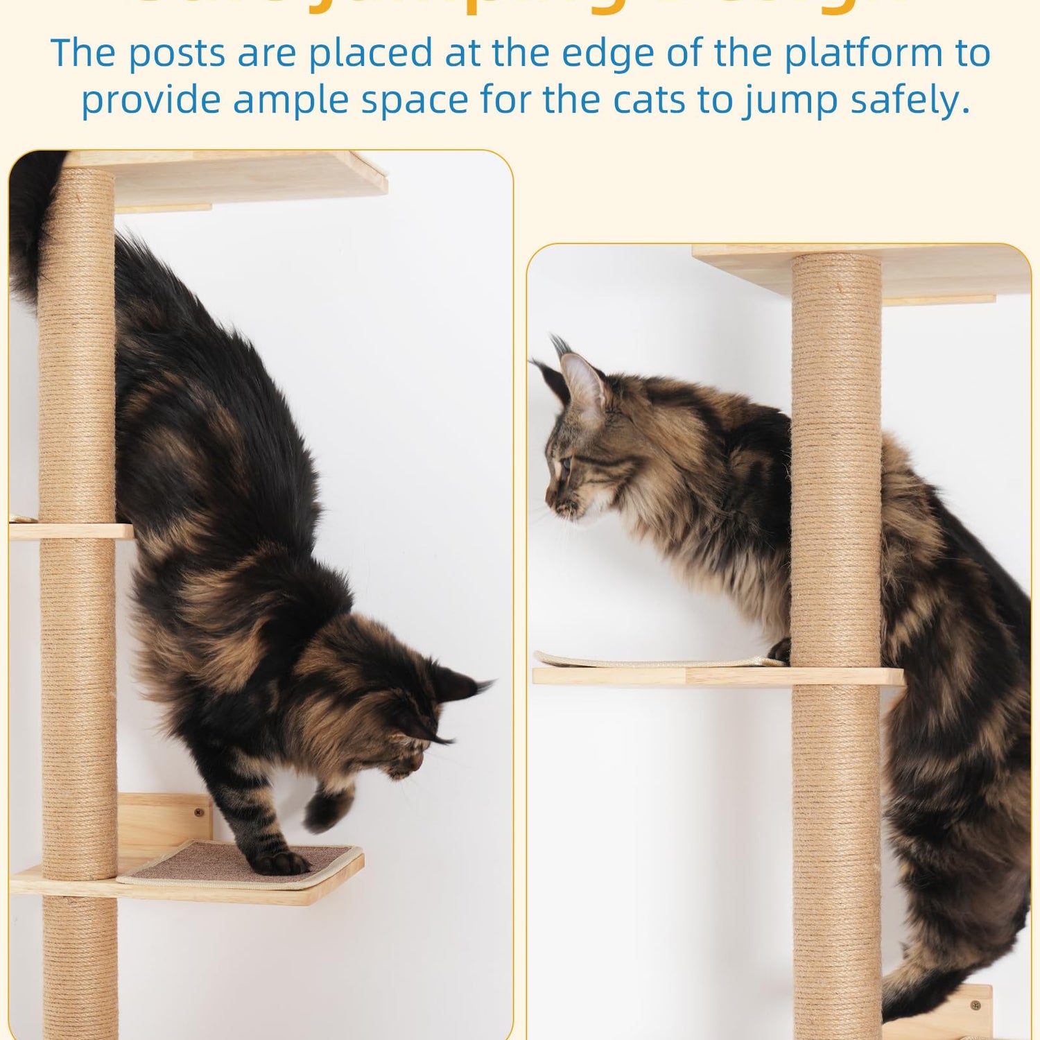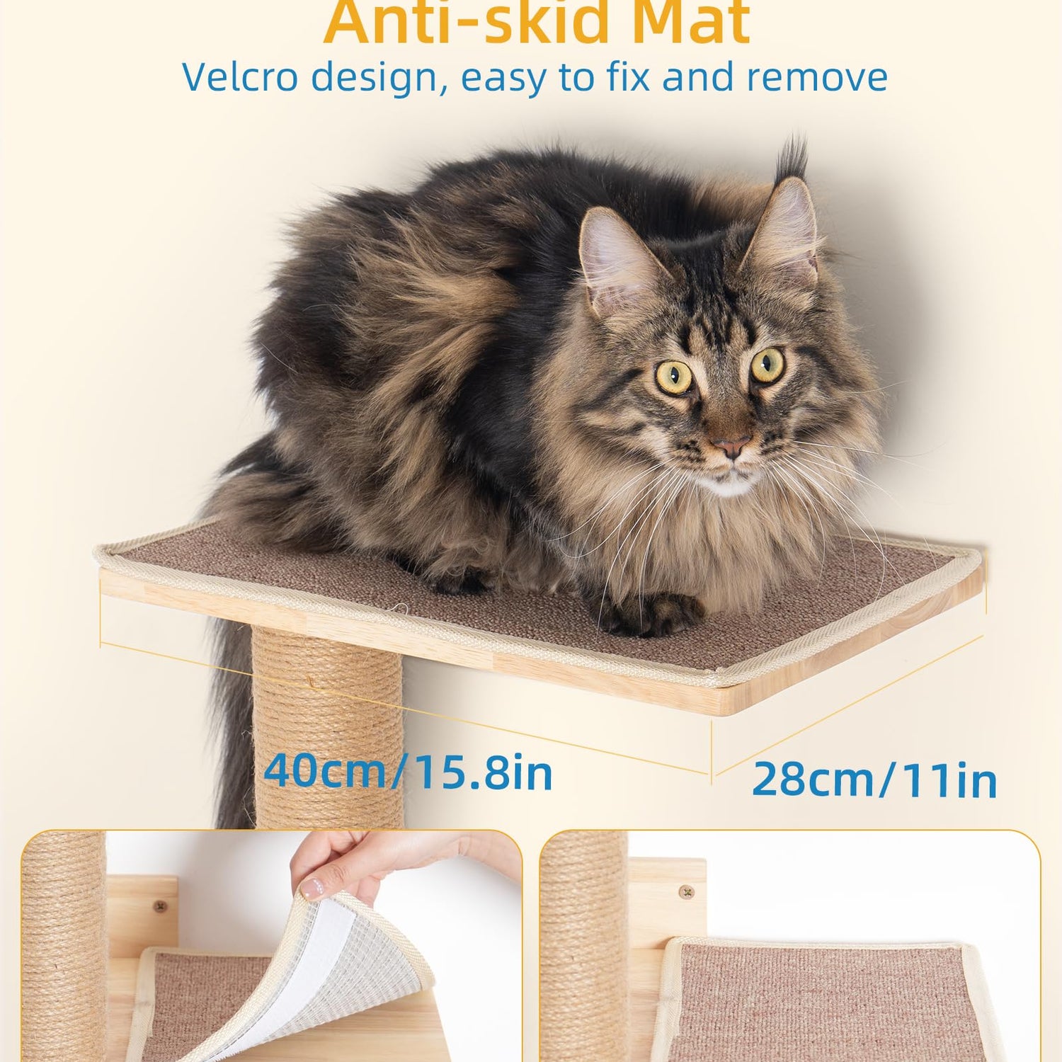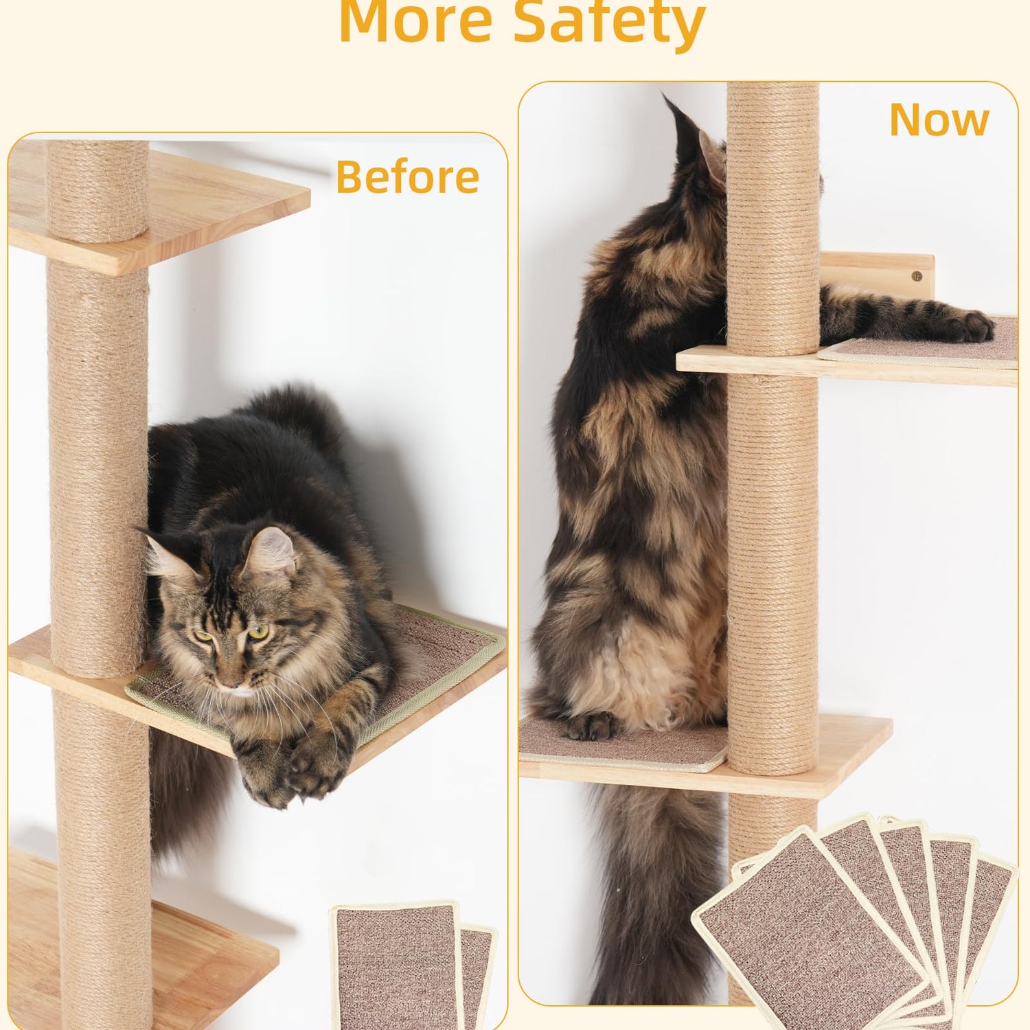 - 5. Considerate Design--- Simple Assembly. All tools and replacement parts of scratching post are readily avaliable for height adjusting.Polished edges on all boards prevent hand injuries, ensuring safe interaction with this wall cat shelves for both our customers and our feline friends