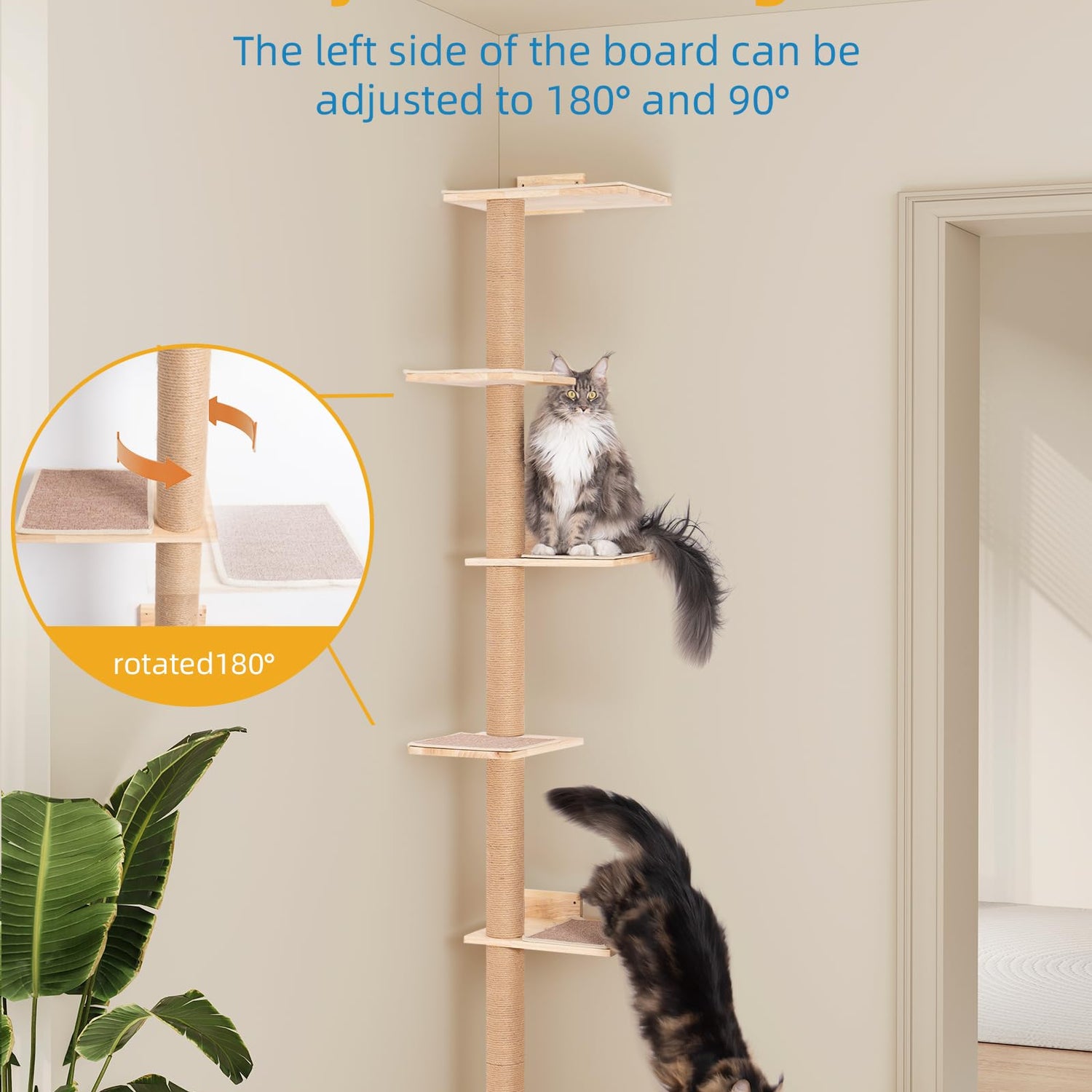 Aechonow 80.3inch Floor to Ceiling Cat Tower on Wall with 5 Mats, Tall Cat Tree for Large Adult Cats, Jute Scratch Post, Large Wooden Perch Stairs Wall Shelves