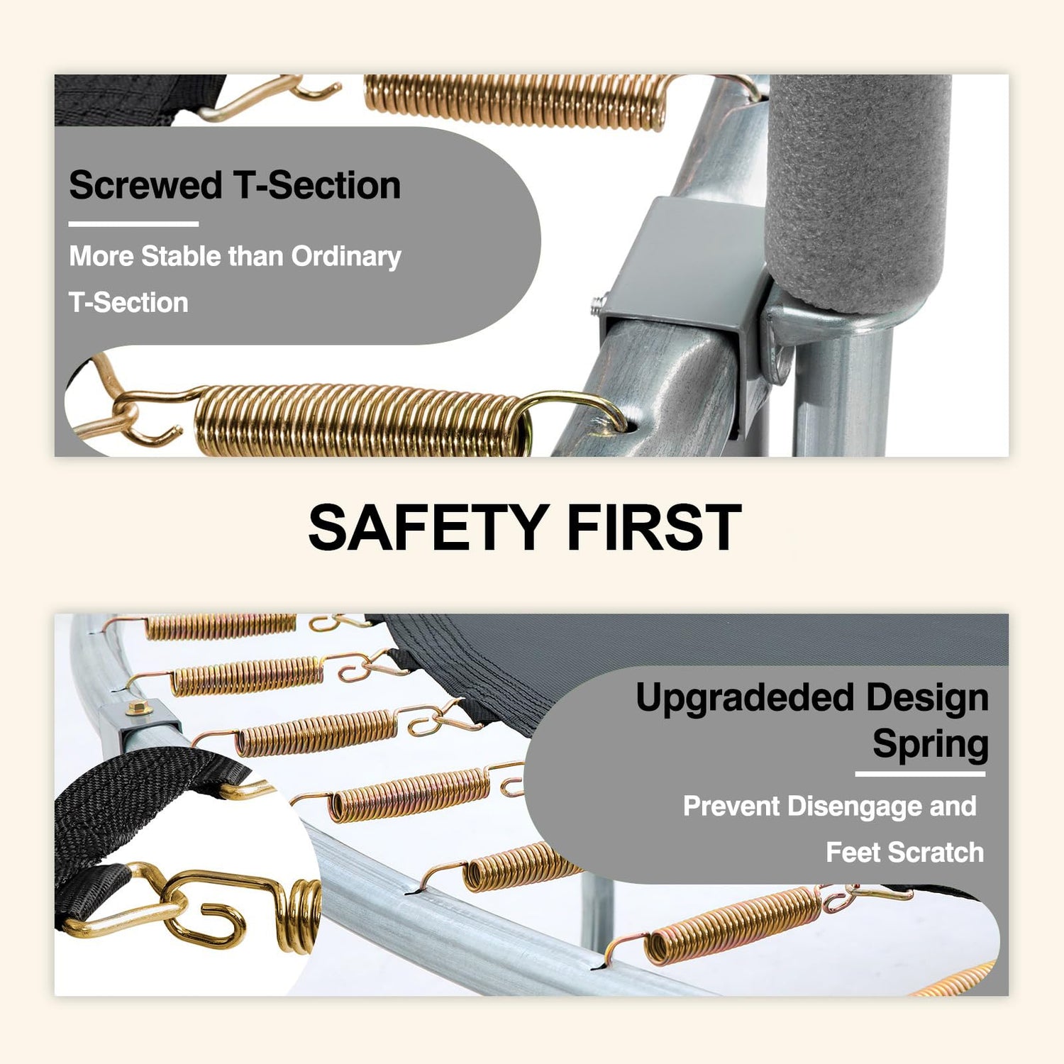 • Easy to Install: Easier and less assemble steps with clear installation instructions on how to set up your trampoline to make sure that you will finish new trampoline fastest for your kids to enjoy in no time!