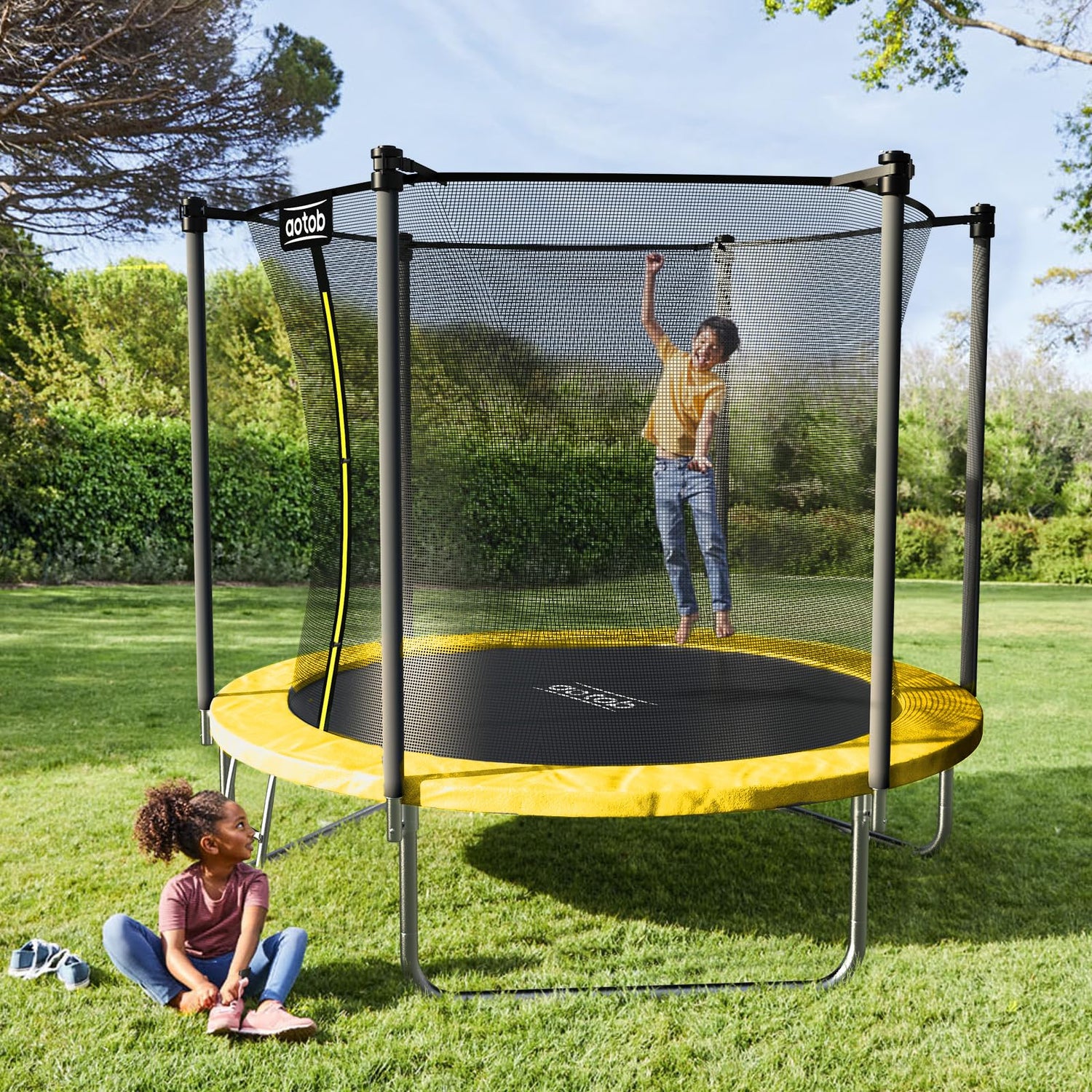 AOTOB 12 FT Trampoline for Kids with Enclosure Net, Recreational Outdoor Trampolines, ASTM Approved (Yellow)