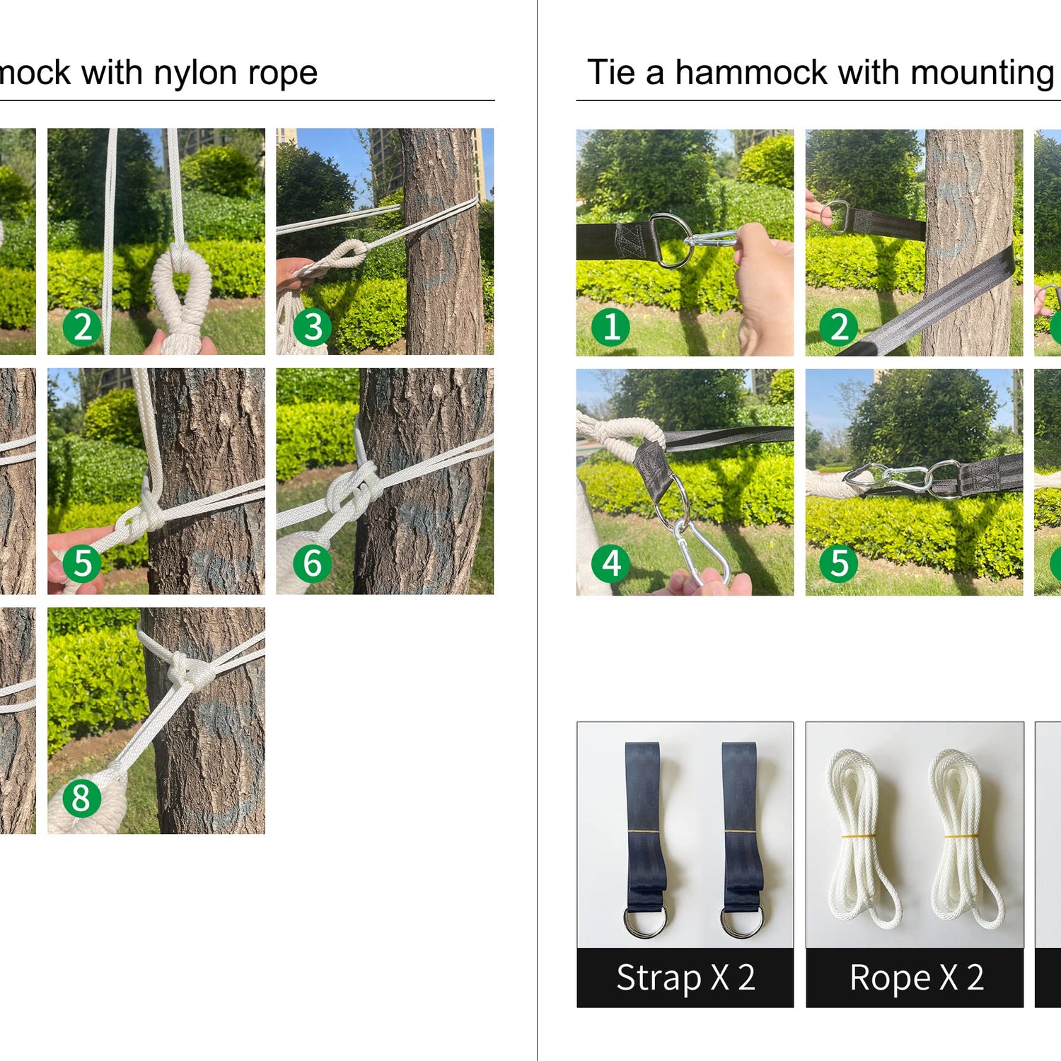 • ๐‡๐š๐ง๐  ๐ˆ๐ญ ๐–๐ก๐ž๐ซ๐ž๐ฏ๐ž๐ซ ๐˜๐จ๐ฎ ๐‹๐ข๐ค๐ž! - We put 2 mounting straps and climbing buckles into the package, with them you can hang this hammock outdoor or indoor safely. Just find 2 strong trees, then enjoy taking a relaxing nap on this beautiful hammock!