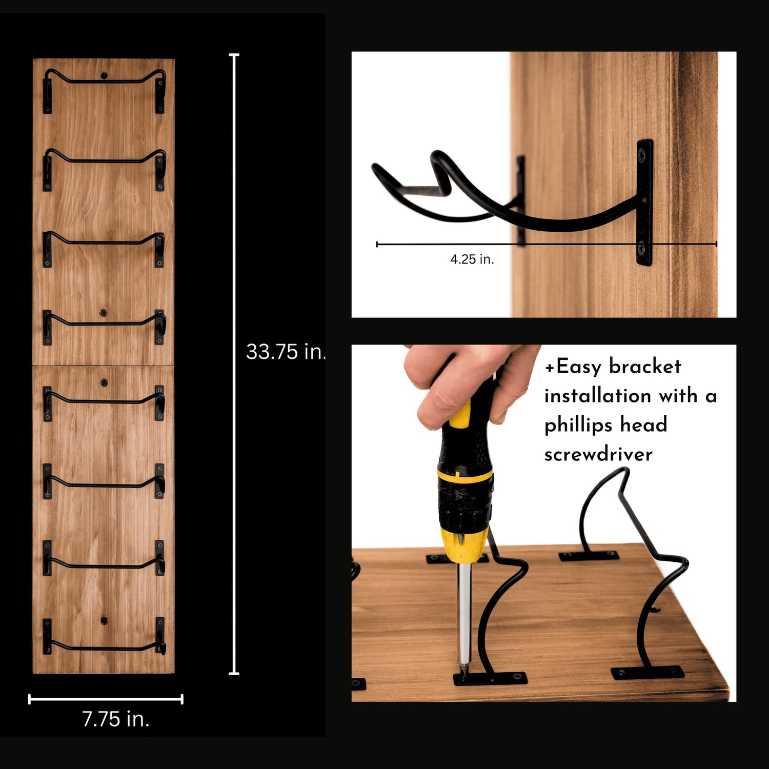 • Easy to Assemble: The included hardware for bracket installation, and both drywall and stud mounting, makes installing our wine bottle rack easy. Our rustic wine racks will allow you to have an impressive wine display that you and your guests will love.