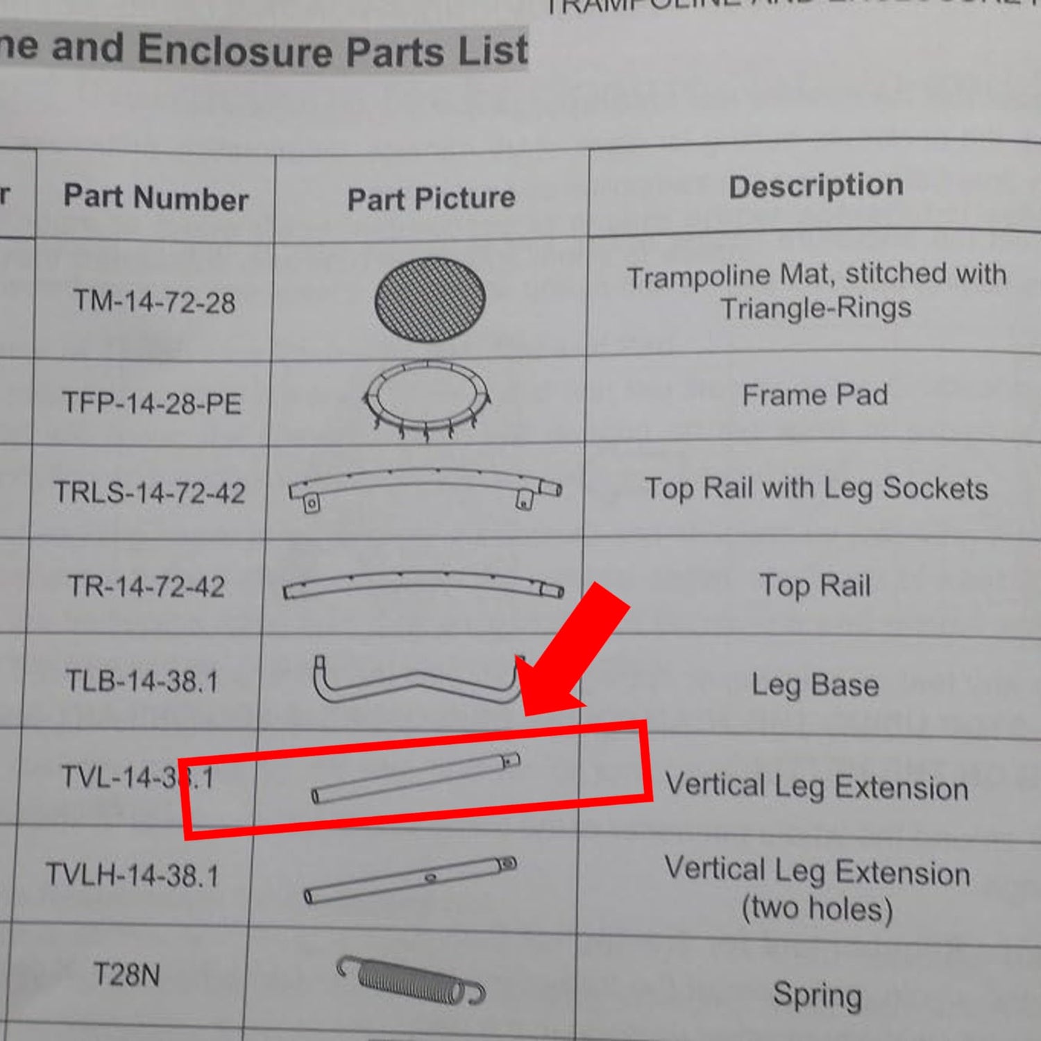 • Trampoline & Enclosure Parts List: TVL-14-38.1 (Part 6A)