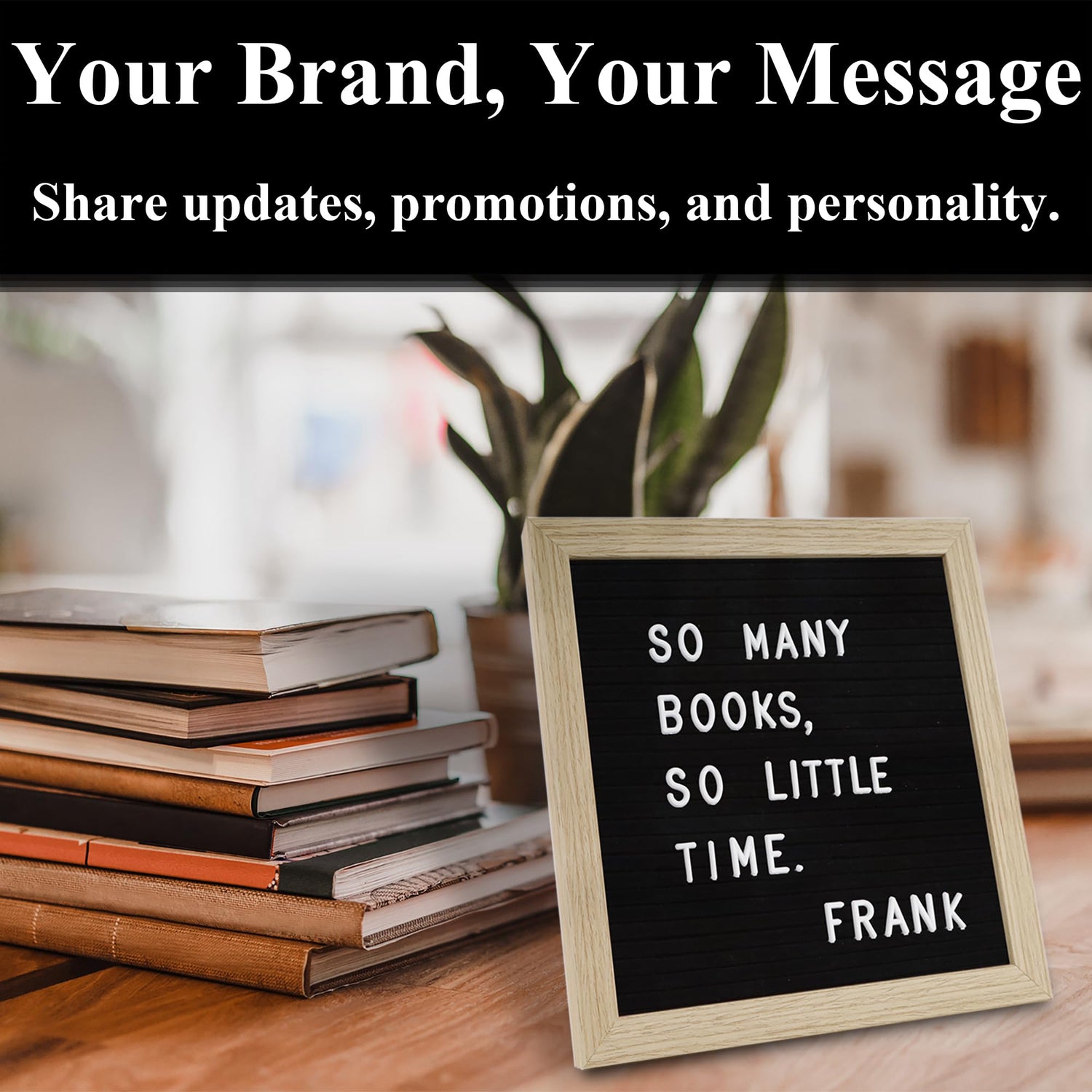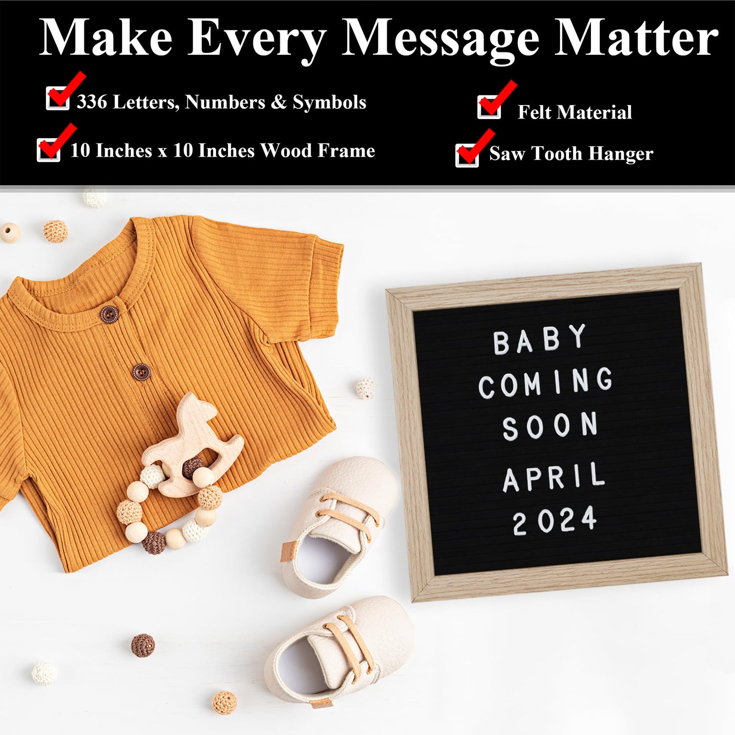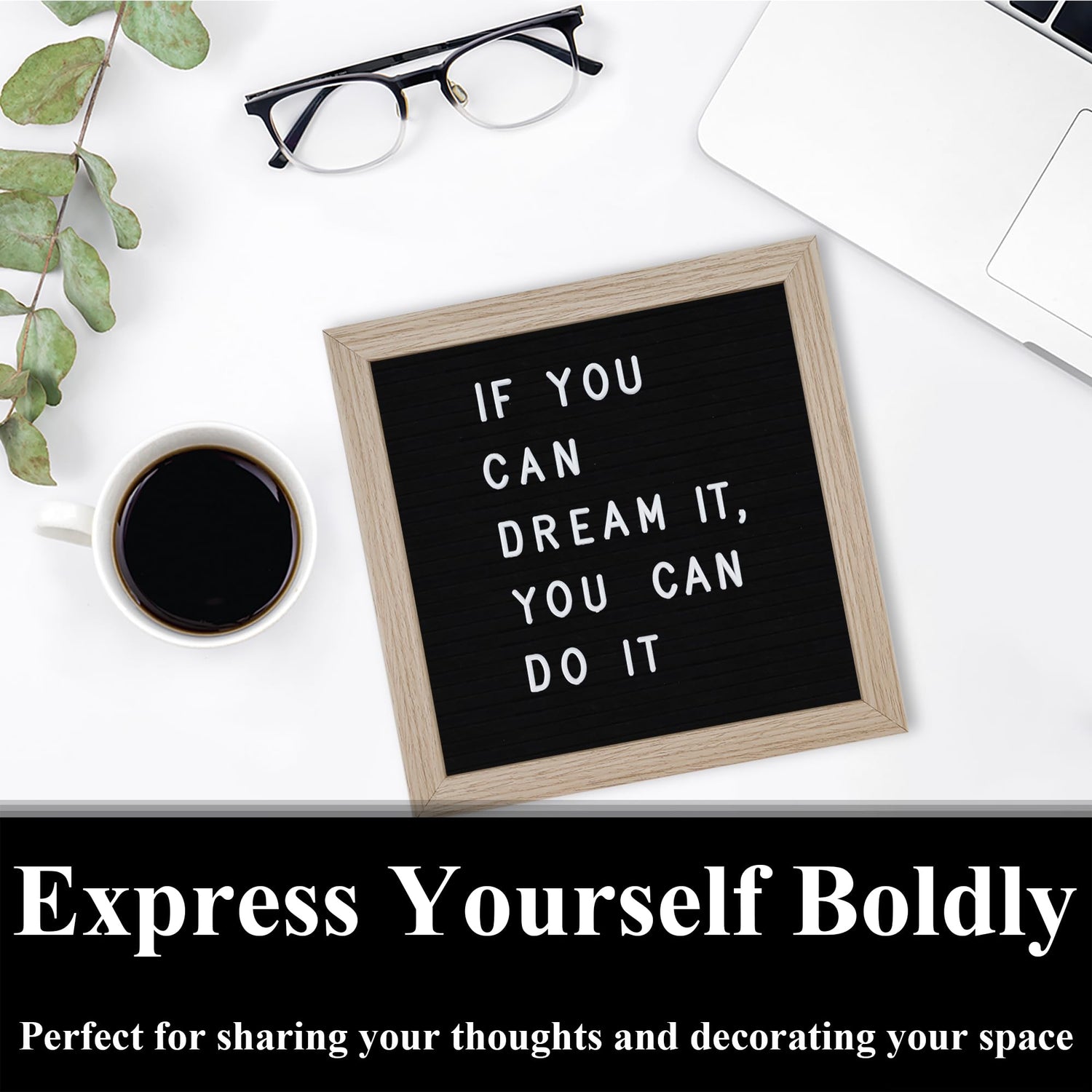 C CRYSTAL LEMON Letter Board, 336 Letters Numbers & Symbols, Felt Letter Board, 10x10 inches, Changeable Wooden Message Board Sign, Wood Frame, Wall Mount, with Display Stand (Black)