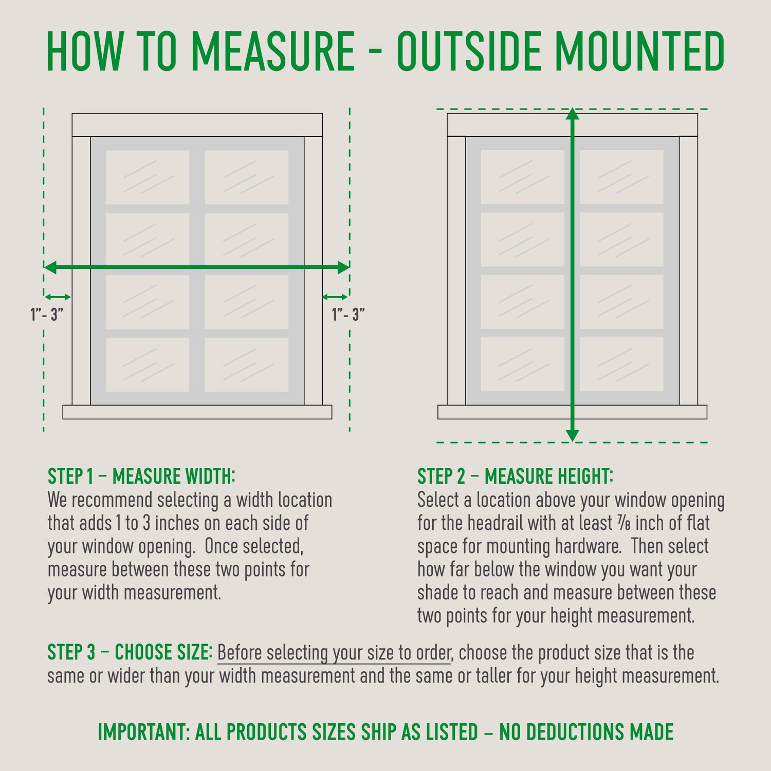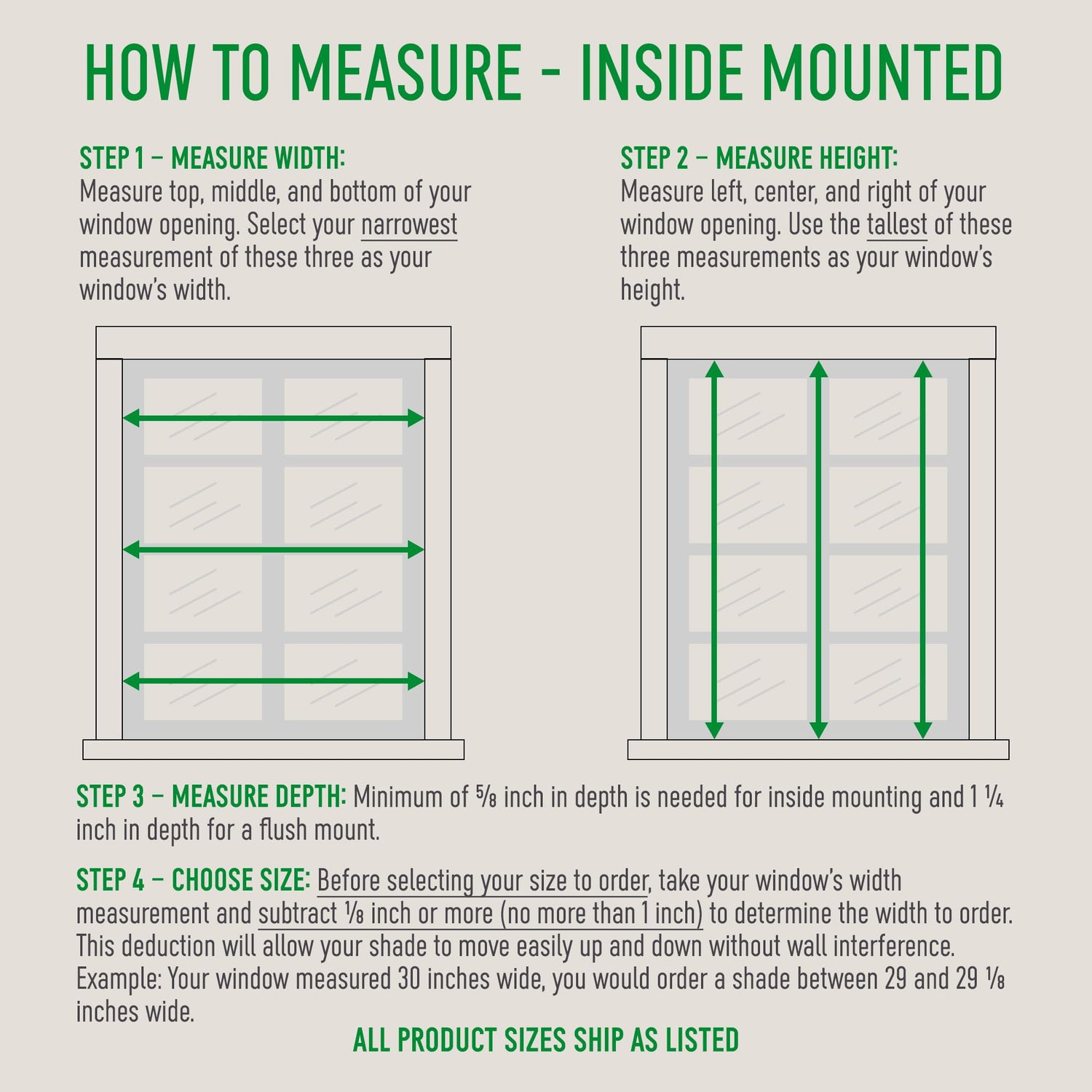 - Important Inside Mount Measuring Instructions: This cellular shade is the exact size - no deductions are made. Measure the width across the top, middle, and bottom of window. Ensure your window measures 34.125" to 35" wide for a 34" wide cellular shade. This allows proper fit with minimal light gaps. Measure the height from the top of the window to the windowsill on the left, middle, and right of the window. The largest measurement will be the height you order.