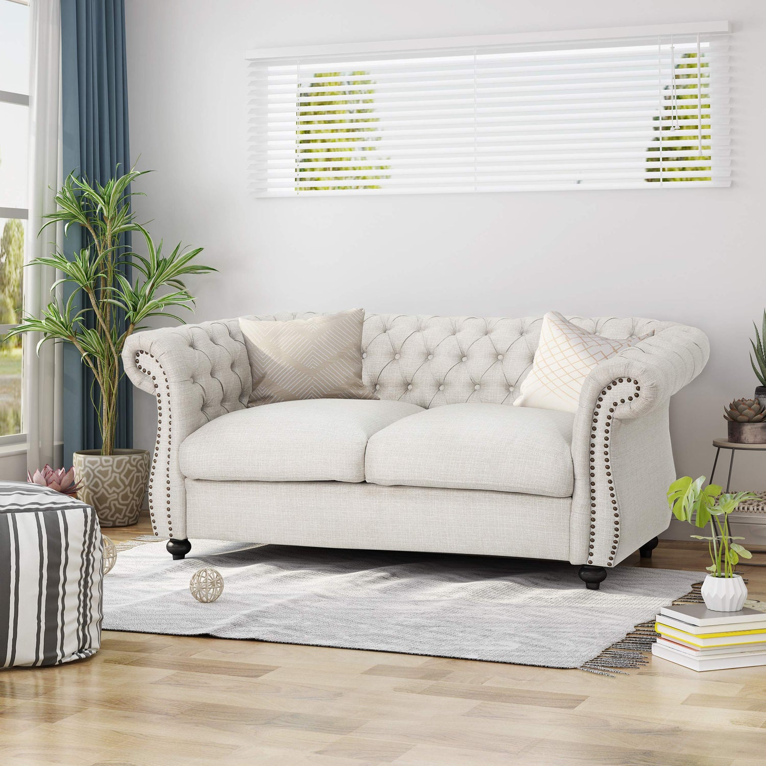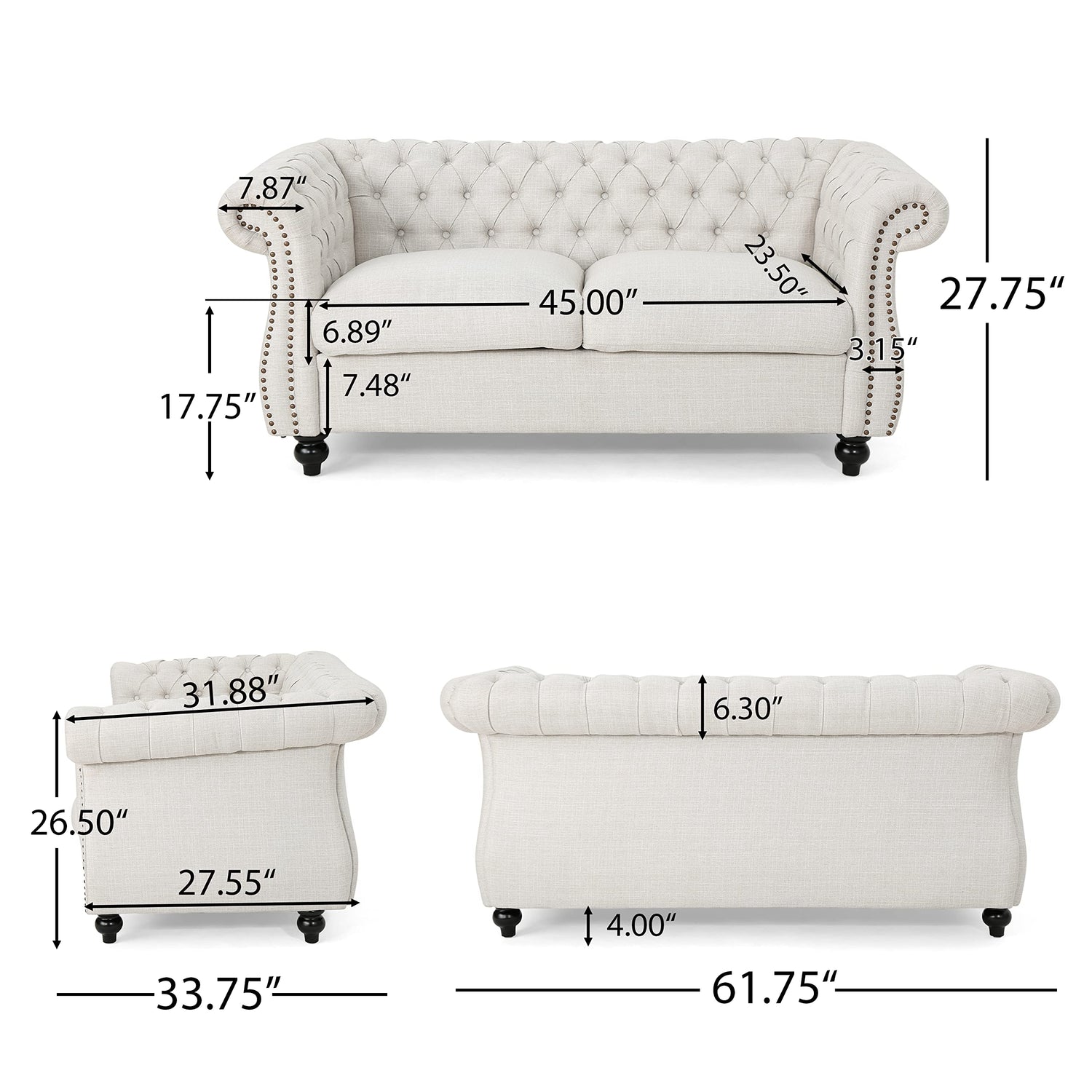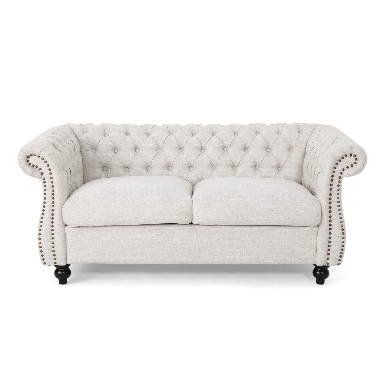 • Nail head accents: Expertly styled, this Loveseat has tasteful nailhead accents on the front end of the scrolled arms to draw the eye in and complement the deep button tufting. Each nailhead is individually applied for a beautiful, handcrafted touch.