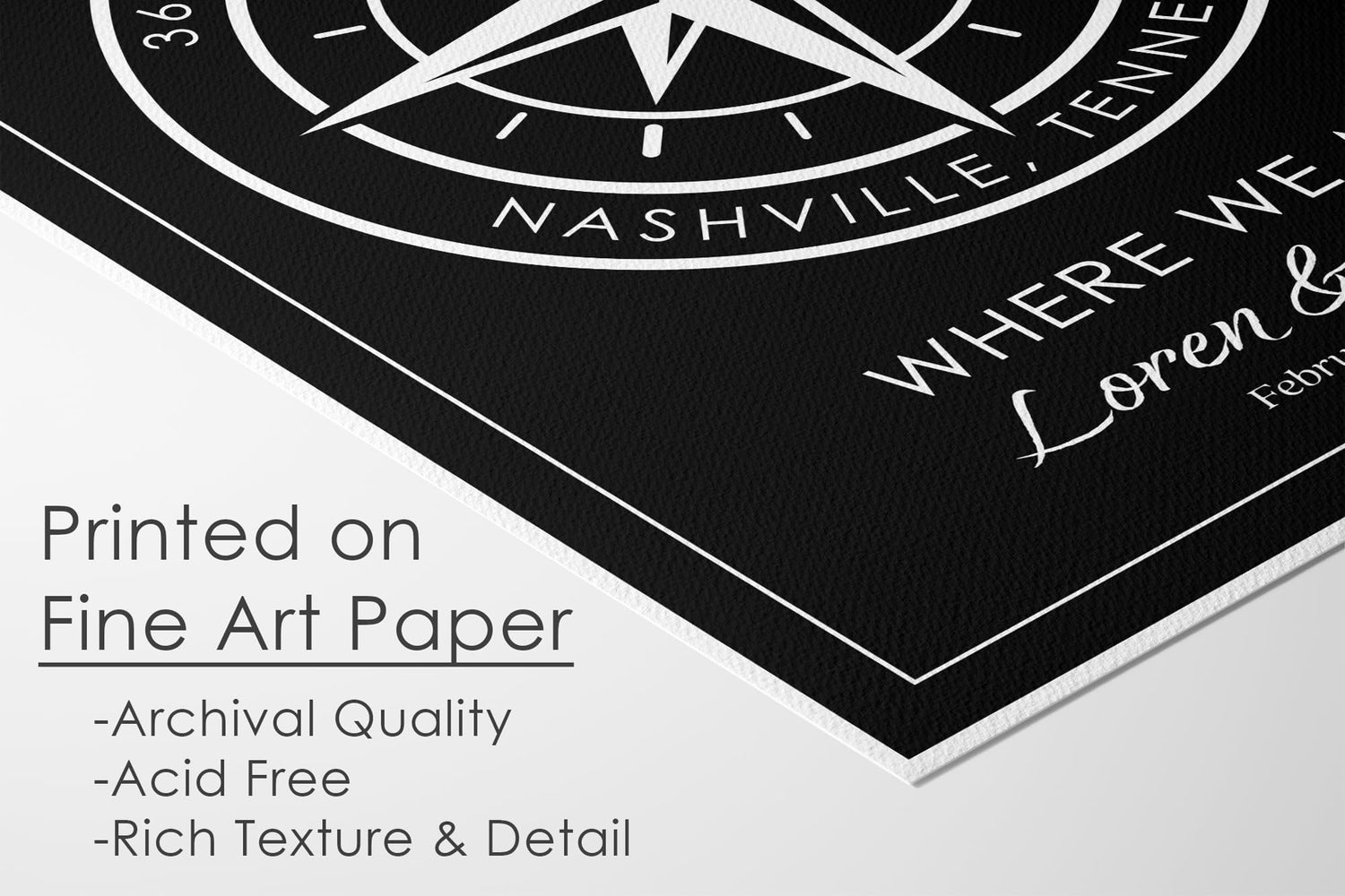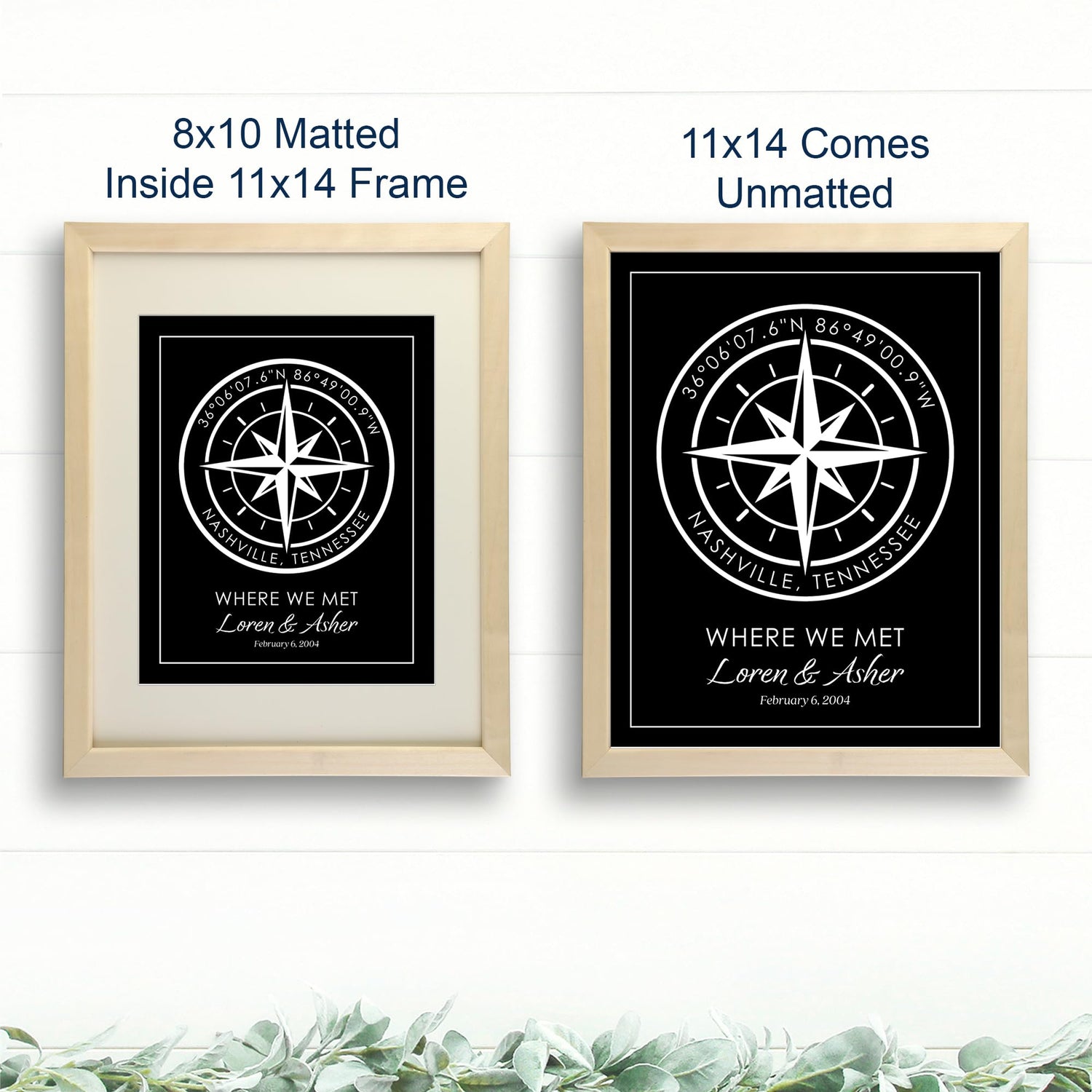 Customizable Compass Coordinates Fine Art Print | Personalized Latitude & Longitude Gift for Special Occasions, Weddings or Anniversary (Black)