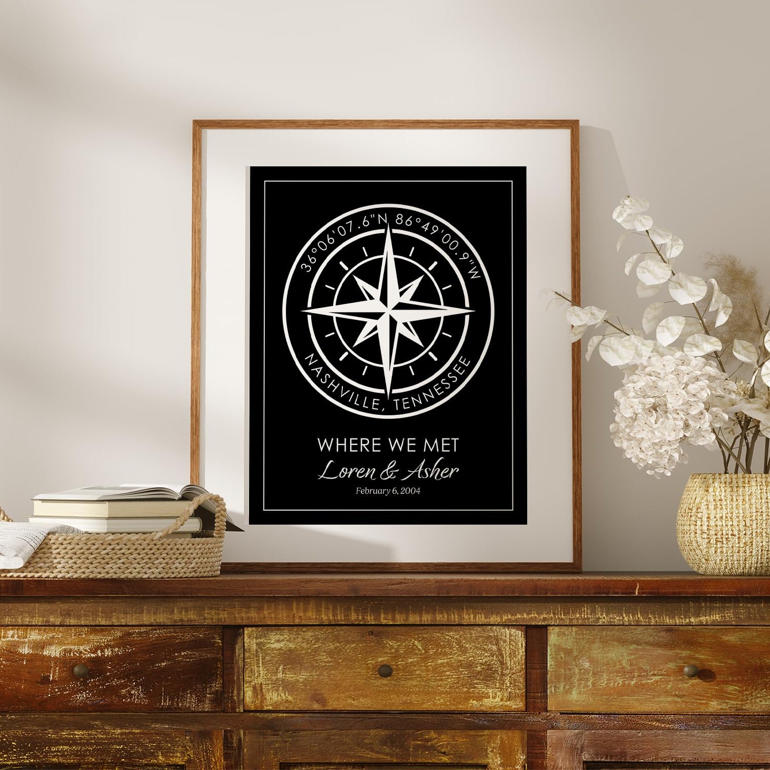 - đăUnique Gift IdeaăLooking for the perfect gift? Custom Compass Coordinates Art Prints are a thoughtful, sentimental present for newlyweds, homeowners, travelers, and loved ones. A meaningful way to commemorate cherished places.
