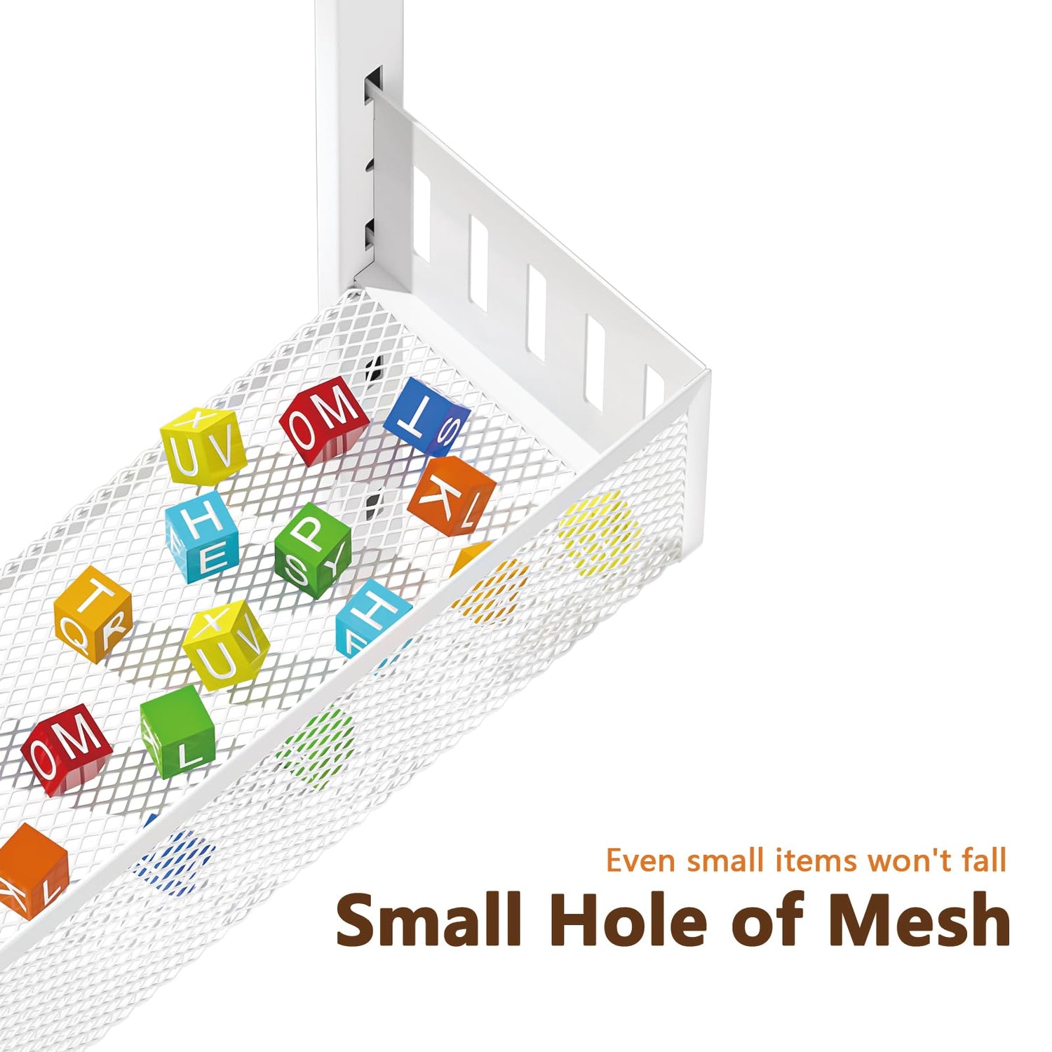 - Special Mesh Design: Our metal mesh door pantry organizer rack offers effortless organization. The open design provides a clear view of your items for easy access. The dense barbed wire on four sides prevents small items like seasoning bags and cosmetics from falling through. NOTE: Each basket can support up to 11 pounds.