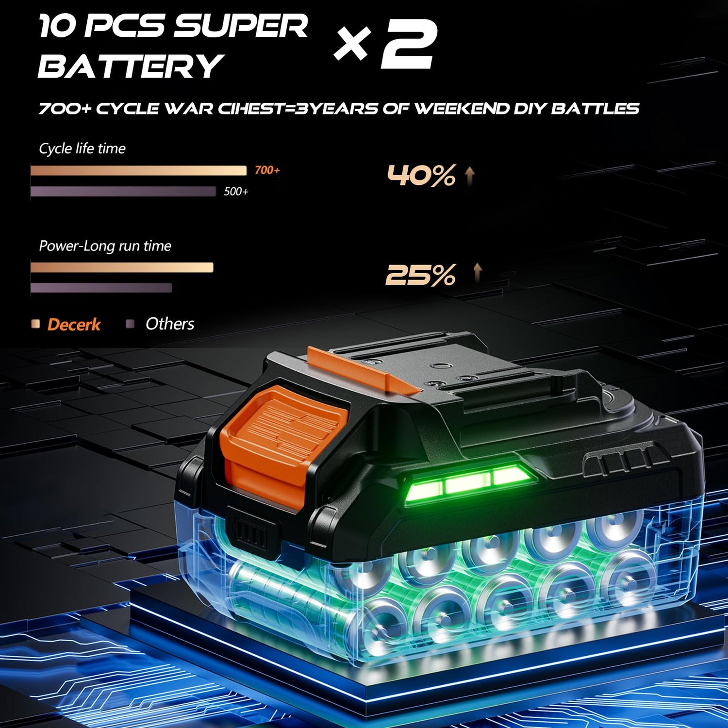 - ๐๐ฟ๐๐๐ฎ๐น ๐๐ฎ๐๐๐ฒ๐ฟ๐ ๐๐ป๐ฑ๐๐ฟ๐ฎ๐ป๐ฐ๐ฒ ๐ ๐ฒ๐ฒ๐๐ ๐ณ๐ฌ๐ฌ+ ๐๐๐ฐ๐น๐ฒ ๐ช๐ฎ๐ฟ ๐ ๐ฎ๐ฐ๐ต๐ถ๐ป๐ฒ: Two 4000mAh lithium savage pummels 150+ frozen F-150 lugs per charge โ enough to rebuild a Peterbilt's 18 wheels without whimpering. 700+ Charge cycles = 3 Years of Weekend DIY Battles. Built for mechanics who laugh at battery death โ when others' cells beg for mercy at 500 cycles, we're still ripping through lawnmower blade swaps, and storm-damaged gutter overhauls
