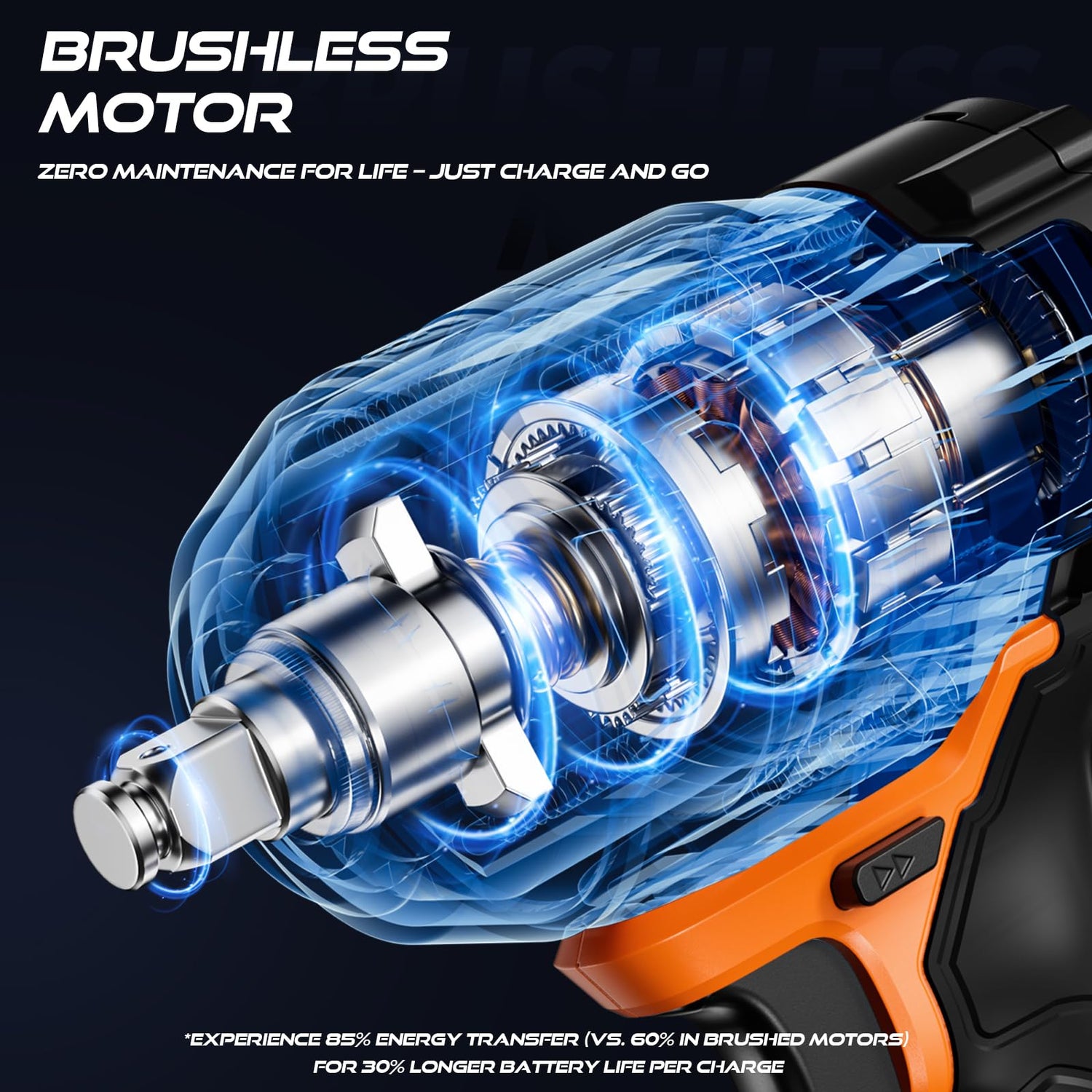 - ๐ฃ๐ฟ๐ผ-๐๐ฟ๐ฎ๐ฑ๐ฒ ๐๐ฟ๐๐๐ต๐น๐ฒ๐๐ ๐๐บ๐ฝ๐ฎ๐ฐ๐ ๐ช๐ฟ๐ฒ๐ป๐ฐ๐ต - ๐๐๐ถ๐น๐ ๐ณ๐ผ๐ฟ ๐๐ฎ๐ฟ๐ฎ๐ด๐ฒ ๐ช๐ฎ๐ฟ๐ฟ๐ถ๐ผ๐ฟ๐: Dominate stubborn trailer lug nuts and tractor PTO bolts with 900Nm truck-grade torque โ powered by a brushless motor that Experience 85% Energy Transfer (vs. 60% in brushed motors) for 30% Longer Battery Life Per Charge. 5000-hour lifespan outlasts 3 truck rebuilds, 10 lawnmower blades, and endless weekend DIY battles. No carbon brushes to replace โ save $150+ in 3 years while others eat repair kits