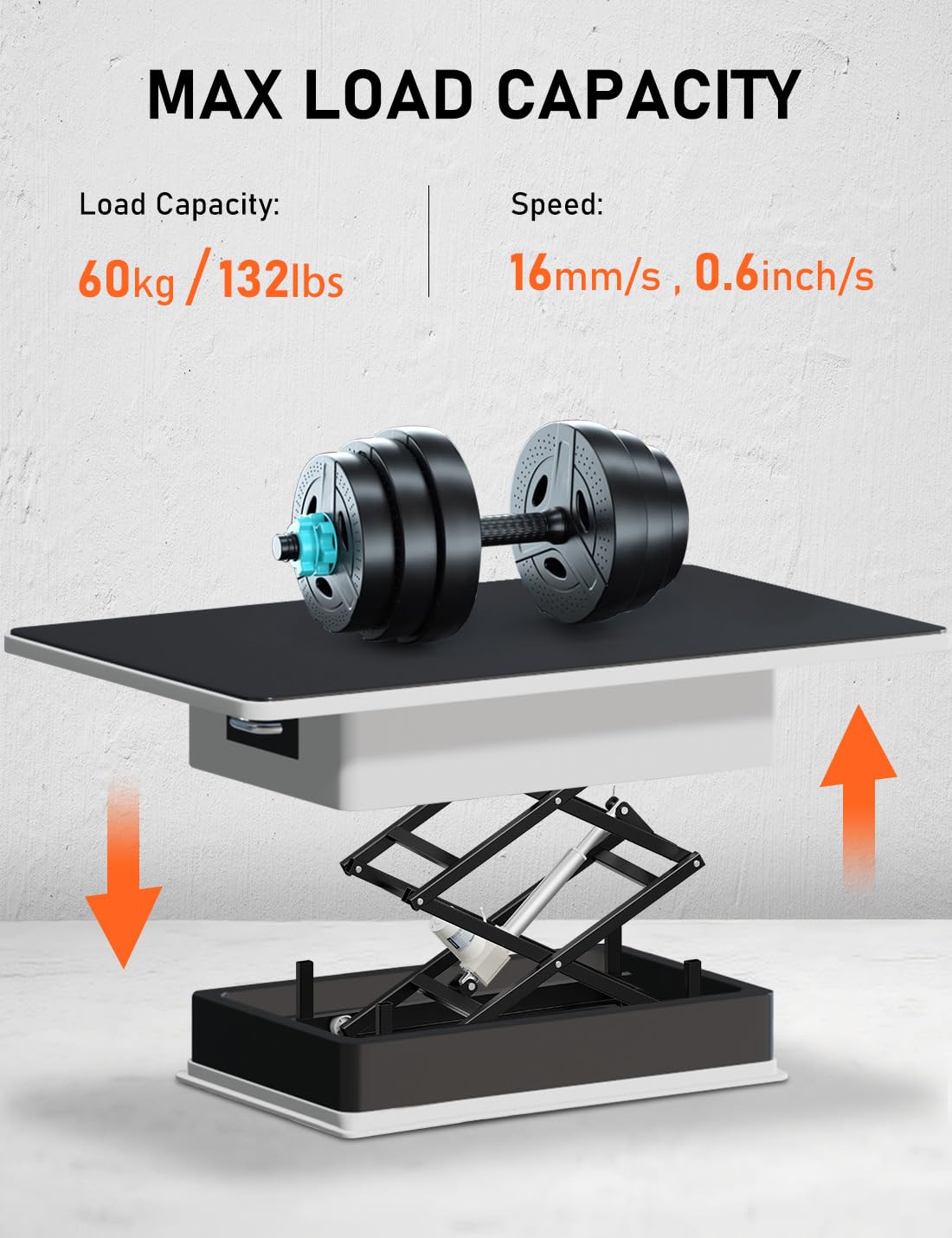DIHOOL Electric Scissor Lift Table 140LB Load, 265-1270MM Height Adjustable Lifting Platform