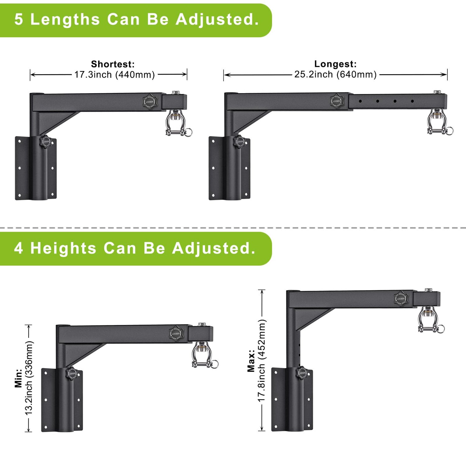 - Adjustable Length and Height: Customize the punching bag hanger length from 17 to 25 inches and the height from 13 to 17 inches to fit your space and preferences, ensuring optimal comfort and performance. When not in use, the mount can be rotated 180° against the wall to save space. This adjustable punching bag stand is perfect for all your training requirements.