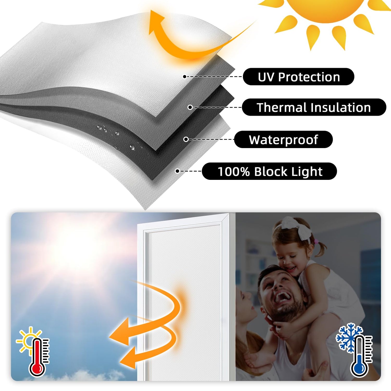 - Total Darkness; Our blackout curtains provide 100% light blackout and privacy to prevent prying eyes, and can also block 100% of ultraviolet rays to prevent strong sunlight from entering the room, ensuring that your room remains dark and private at all times, no matter morning or night. window blinds are perfect for nurseries, day sleeping and home theater rooms.(Silver-silver style: can be used with both sides facing outward.)
