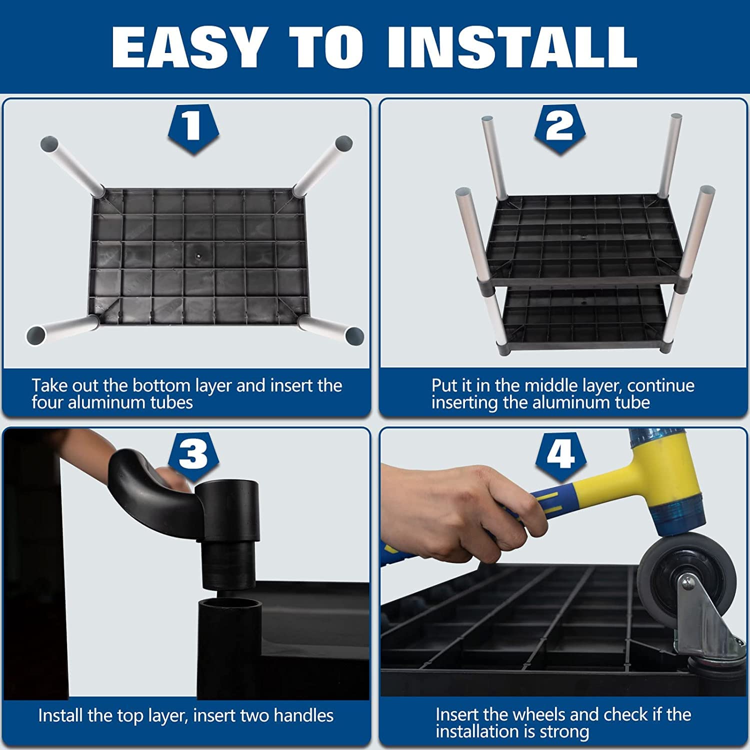 - 【Easy to Assemble】The service cart takes only a rubber mallet to install it easily. There is a free rubber mallet in the package .