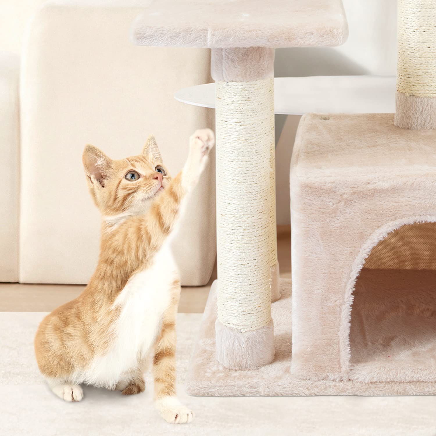 FISH&NAP Cute Cat Tree Kitten Cat Tower for Indoor Cat Condo Sisal Scratching Posts with Jump Platform Cat Furniture Activity Center Play House Beige