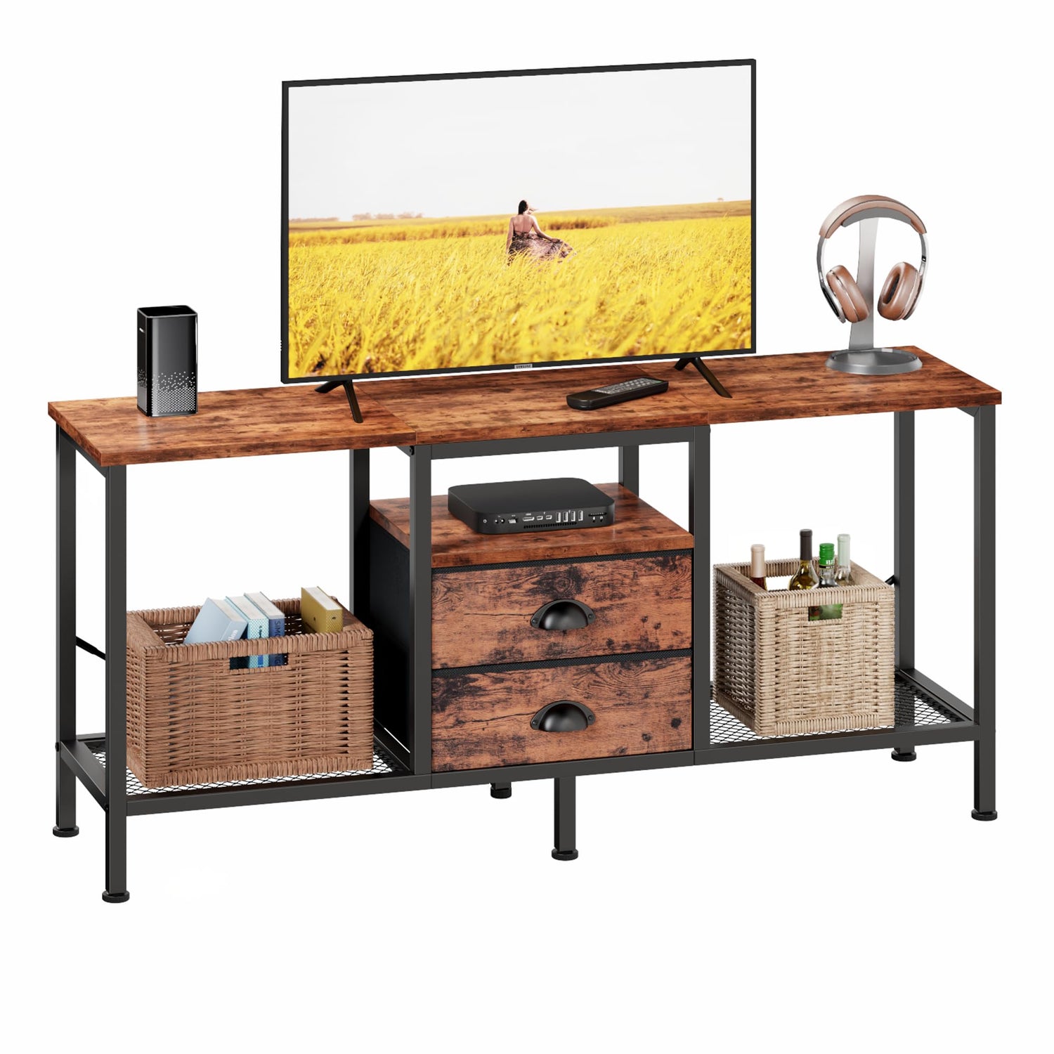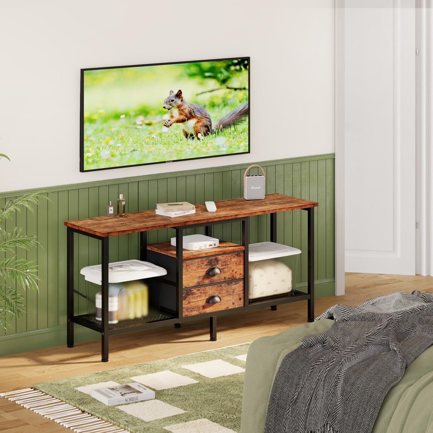 Furologee TV Stand with 2 Fabric Drawers, 42 Inch Small Entertainment Center with Open Storage Shelves, Media Console Table for Bedroom, Living Room, Rustic Brown