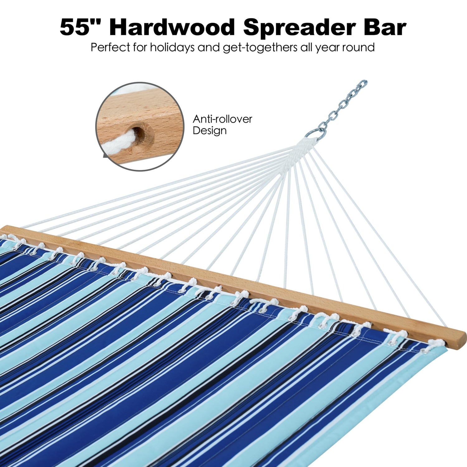 Gafete 2 Person Hammocks for Outside, Double Quilted Fabric Outdoor Hammock with Spreader Bar, Large Removable Pillow, Storage Pockets, Carabiners, Max 475 lbs Capacity (Catalina Beach)