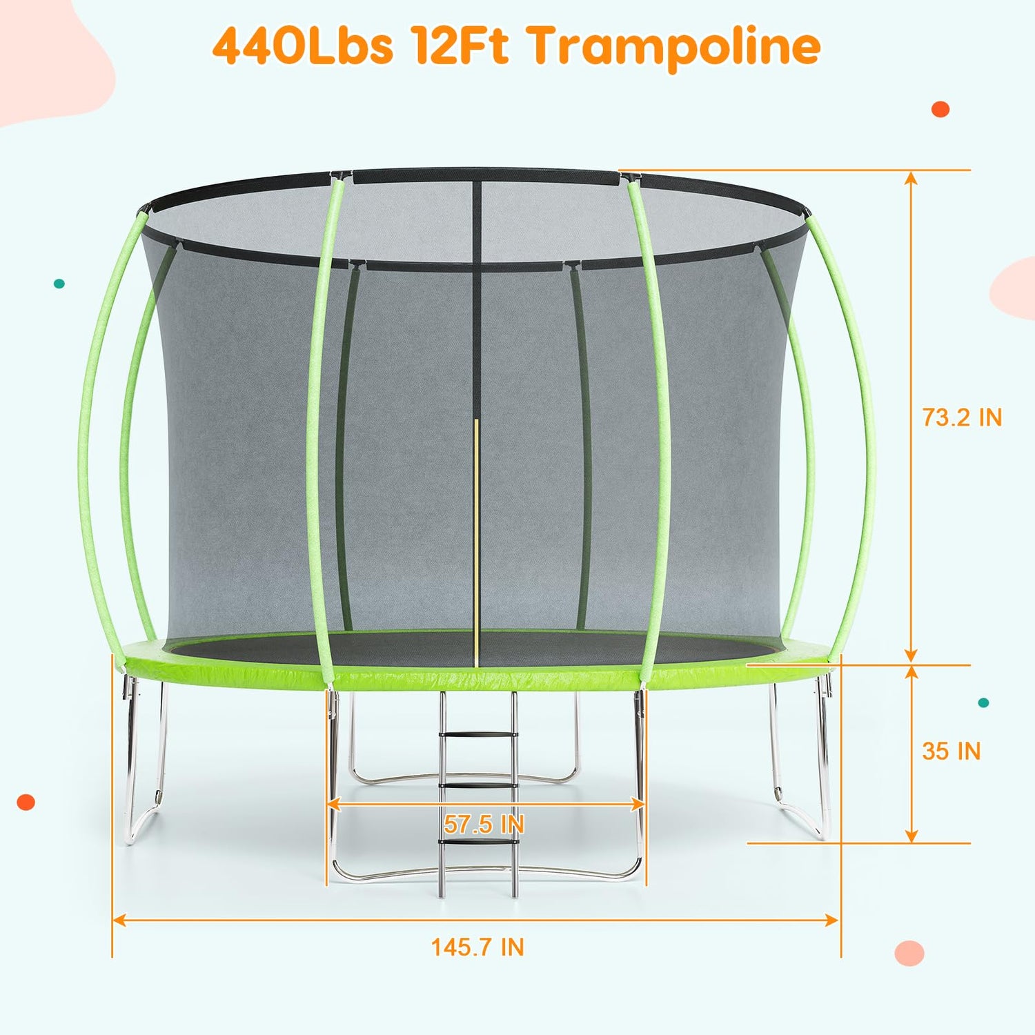 Garveetools Trampoline 10FT 12FT 14FT 16FT with Enclosure & Ladder, ASTM Approved Heavy-Duty Outdoor Recreational Trampoline for Kids Adults, 440LB Capacity (Green, 12FT)