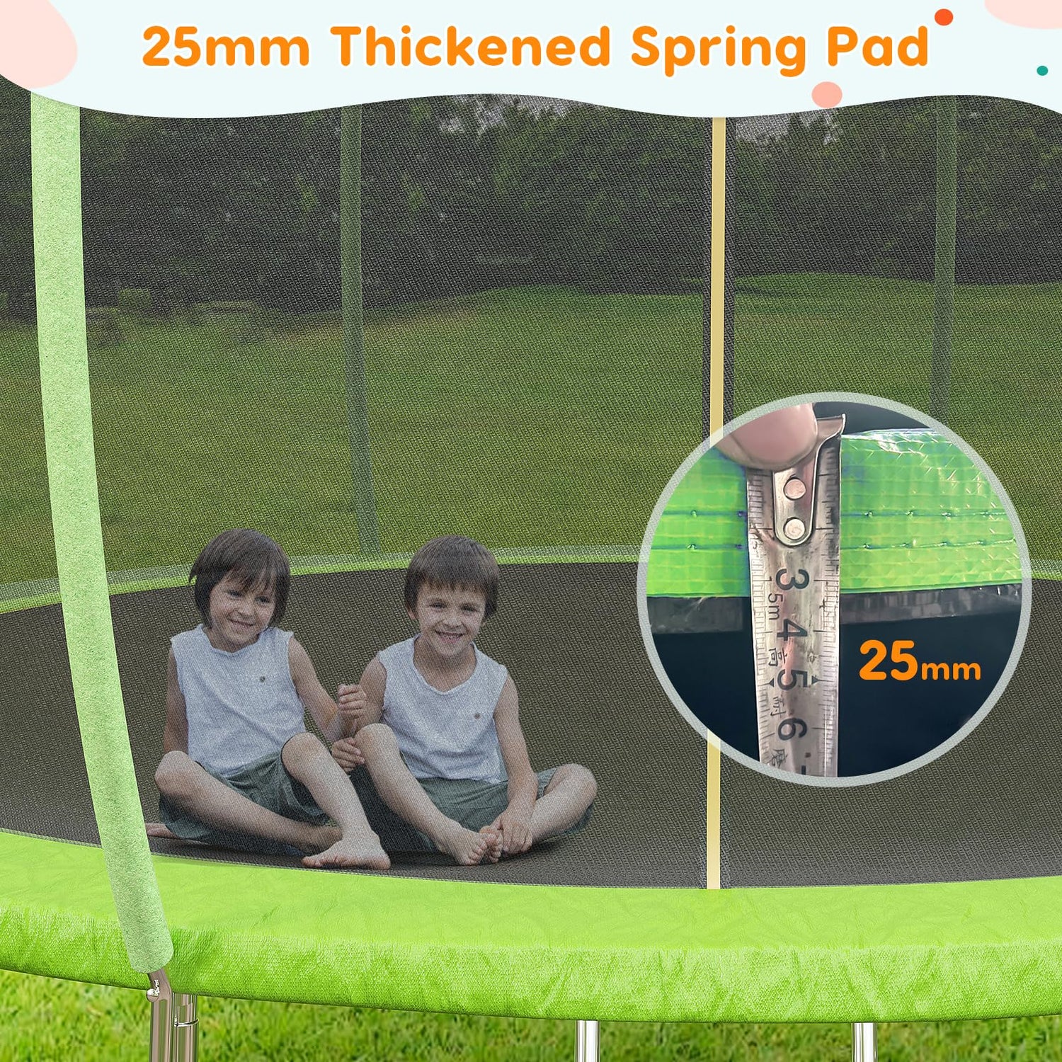 - Family Fitness Made Fun: From backyard playdates to adult cardio sessions, this 10FT-16FT trampoline supports all ages. Tested for 100,000 jumps without fading – a long-term investment in health and happiness.