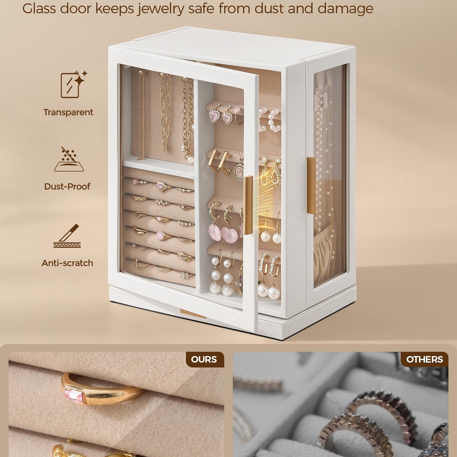 - 【Protect & Display】This jewelry box features three clear glass windows, a vertical layout, 360° rotation and a fully enclosed design. It's dustproof and moisture-resistant, keeping your jewelry safe while letting you easily display and find your pieces at a glance.