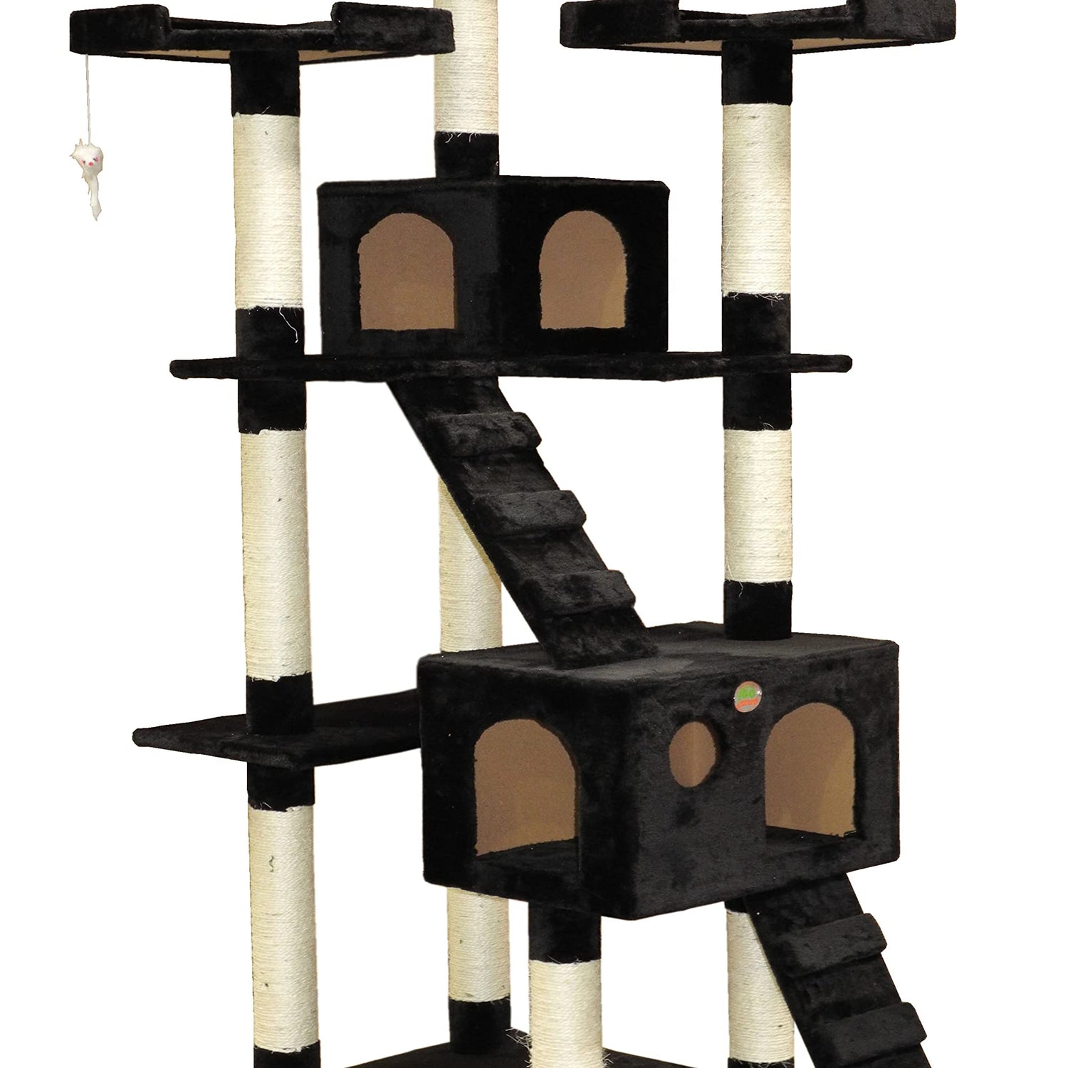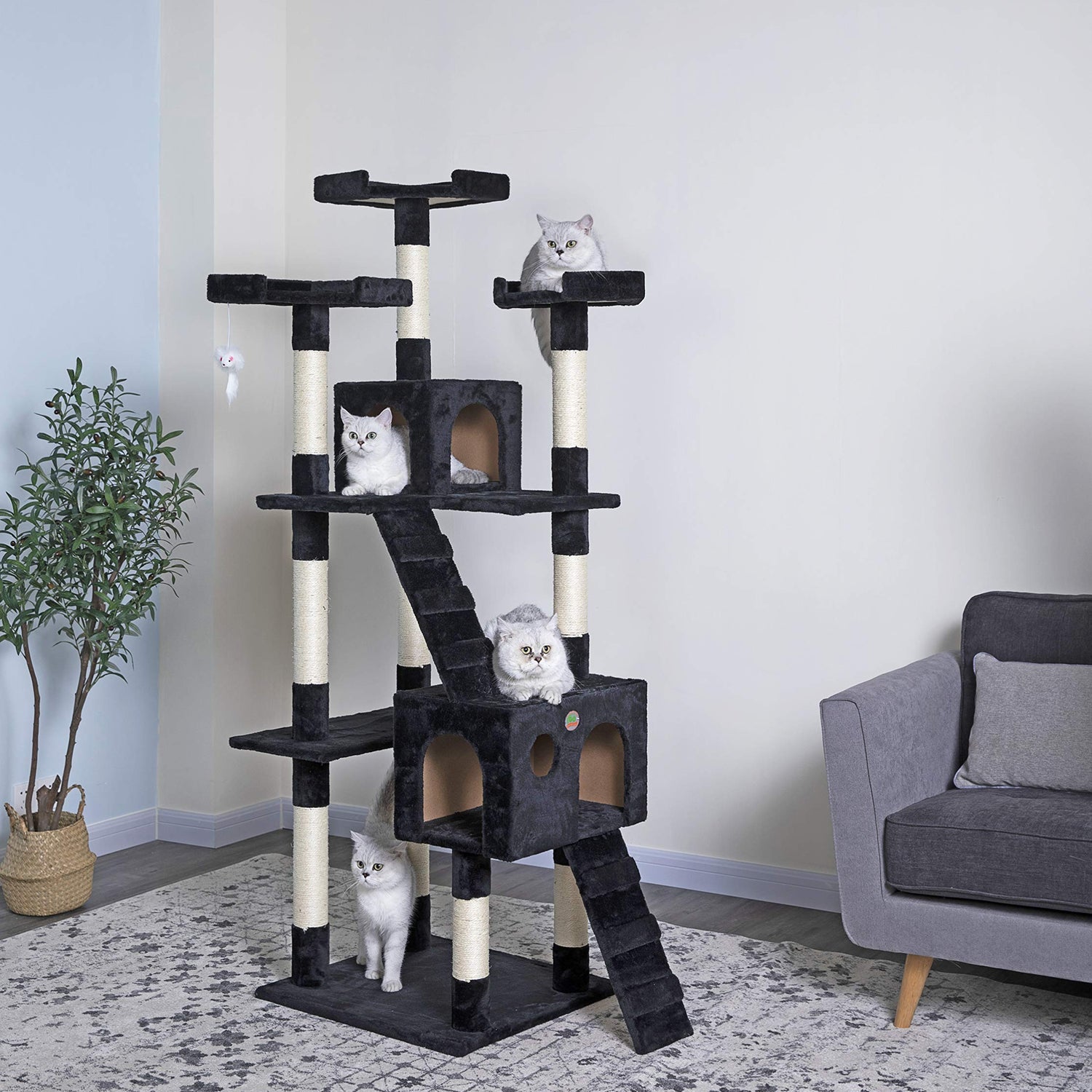 Go Pet Club 72" Tall Cat Tree Tower with Cat Condos - Large Cat Tree - Cat Tower for Indoor Cats - Play Scratch Hide Climb Activity Furniture with Toy - Black