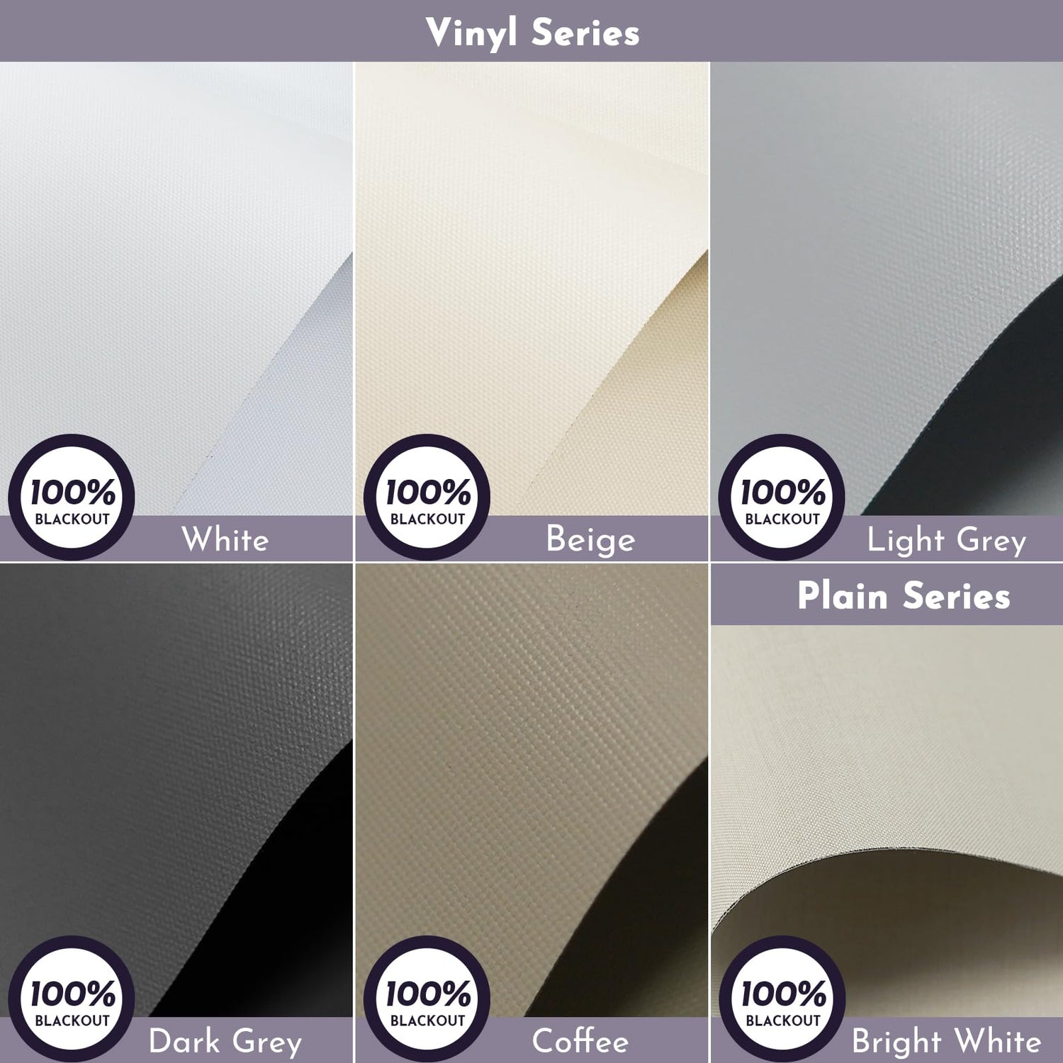 Graywind 100% Blackout Roller Shades Window Blinds for Home and Office Cordless Blinds (100% Blackout Waterproof Shade Fabric Samples)