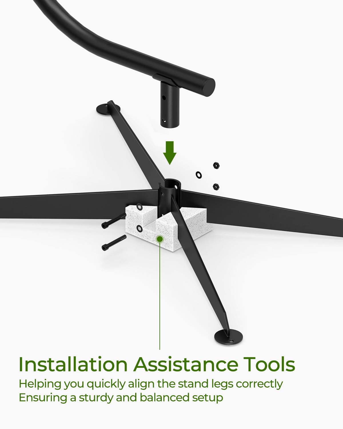 - Easy Assemble: The hanging chair stand is easy to assemble, with the combination of installation instructions and the additional accessory pack, you can complete the installation in very little time, and have more time to enjoy the hammock stand