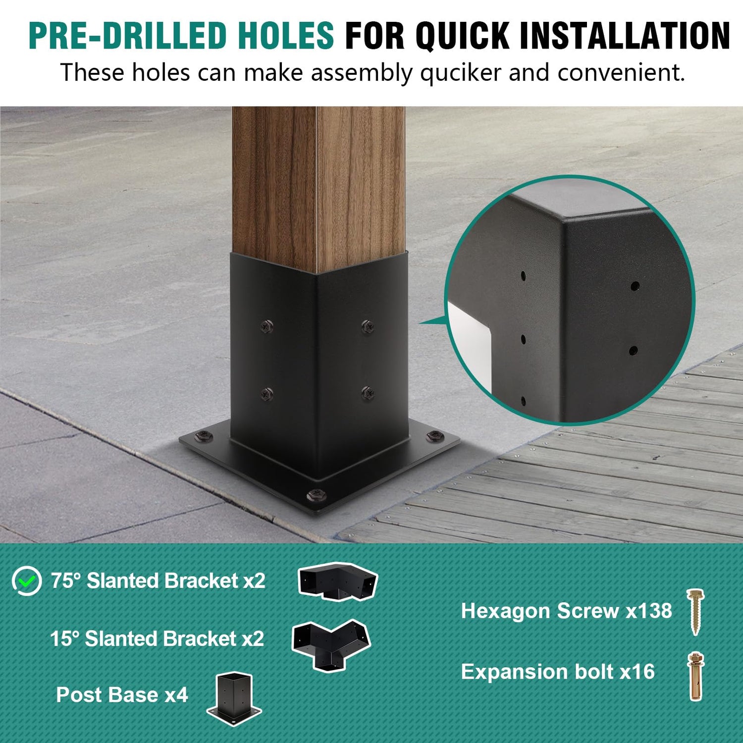 - 「EASY TO INSTALL」Package contains 2pc 75° slanted bracket, 2pc 15° slanted bracket, 4pc post base, 16 expansion bolts, 138 screws, fully equipped to complete the installation process quickly and easily, saving time and effort.