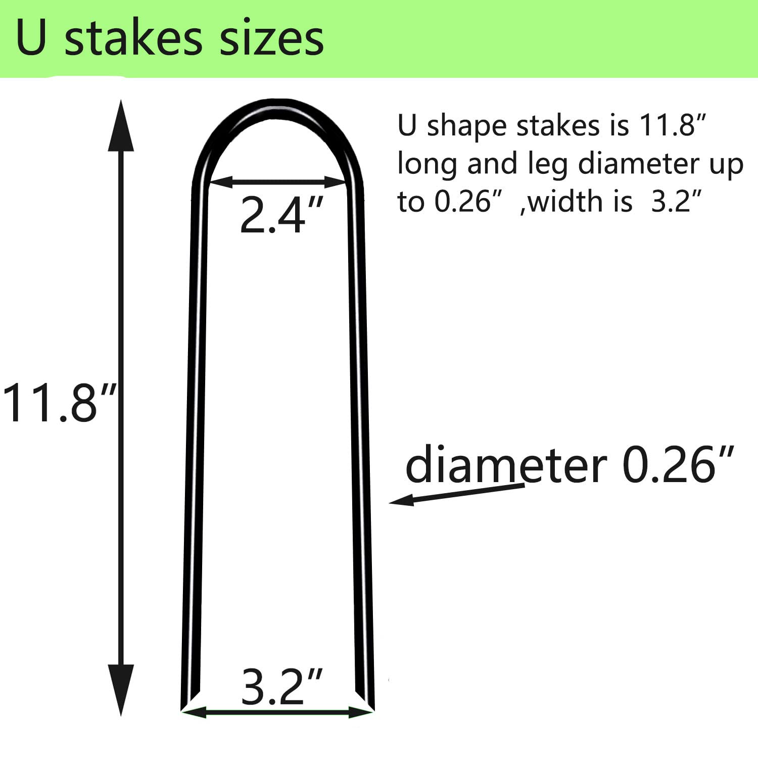 - ☀☀☀ Trampoline Stakes Anchors High wind:Ultra durable stainless steel u-shaped stakes is 11.8" long and leg diameter up to 0.26", Width is 3.2",Sharp Ends of stakes for easy insertion into the ground.