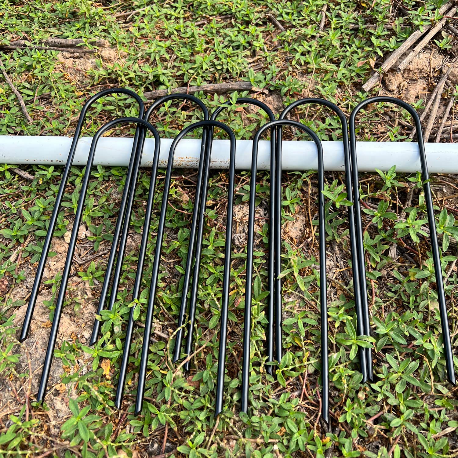 Heavy Duty Trampoline Anchors High Wind U-Shaped Sharp Ends Ground Anchor Galvanized Steel 11.8inch Safety Stakes for Soccer, Tents and Garden Decorations (Black 8pcs)
