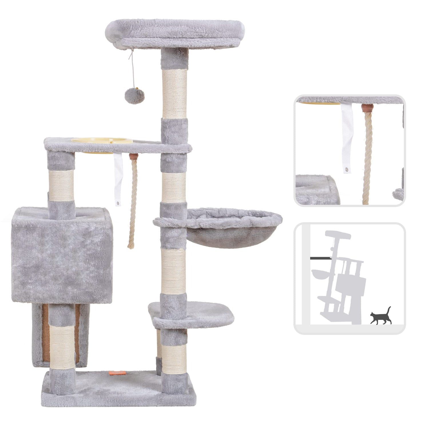 - Stability is the primary consideration for a cat tower: Reinforced cat climbing frame base, sisal wrapped scratch posts and Anti-toppling devices ensures the security of active kittens and cats playing on the activity centre