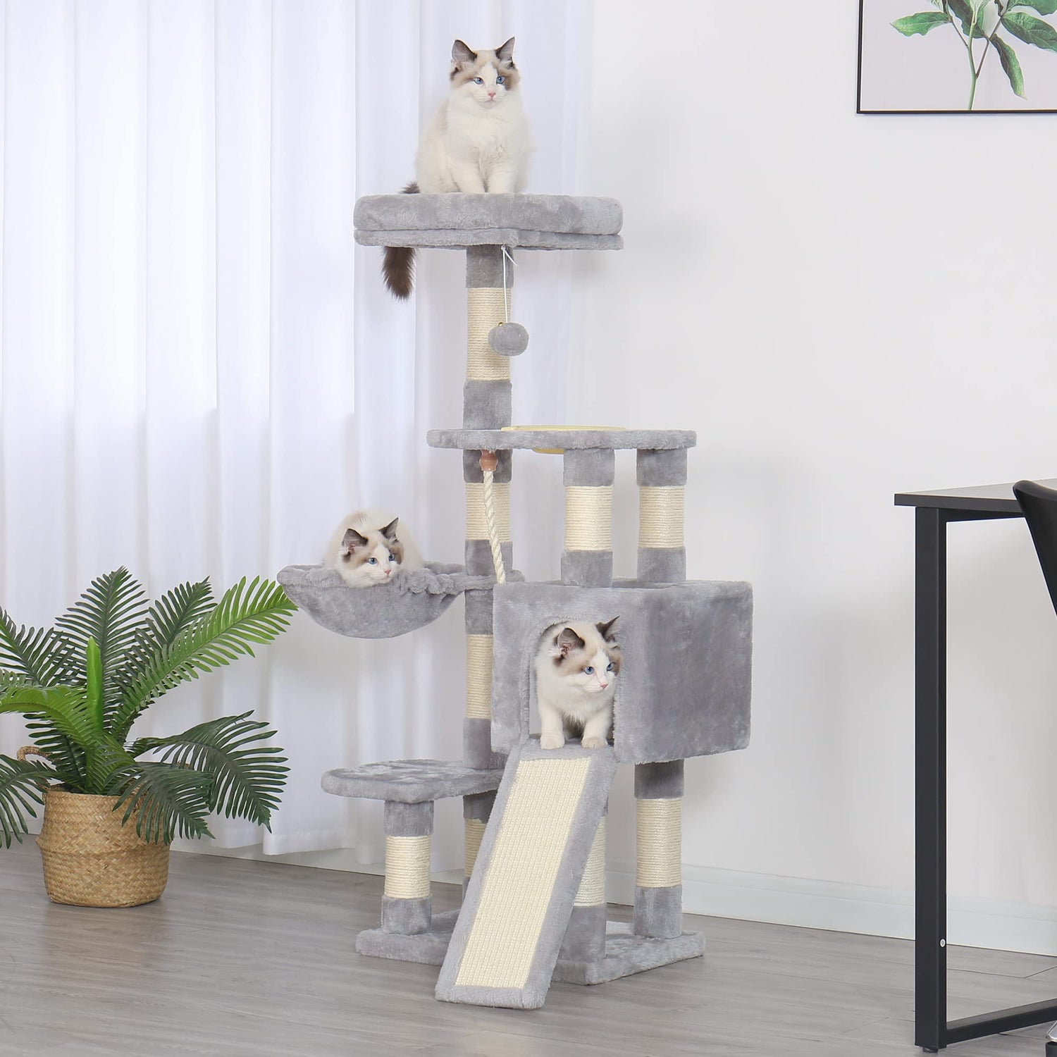 - Ideal design of structure: Structure of the cat tree is designed according the climbing habits of cats. A springboard is add to help any age range cats to climb up and down