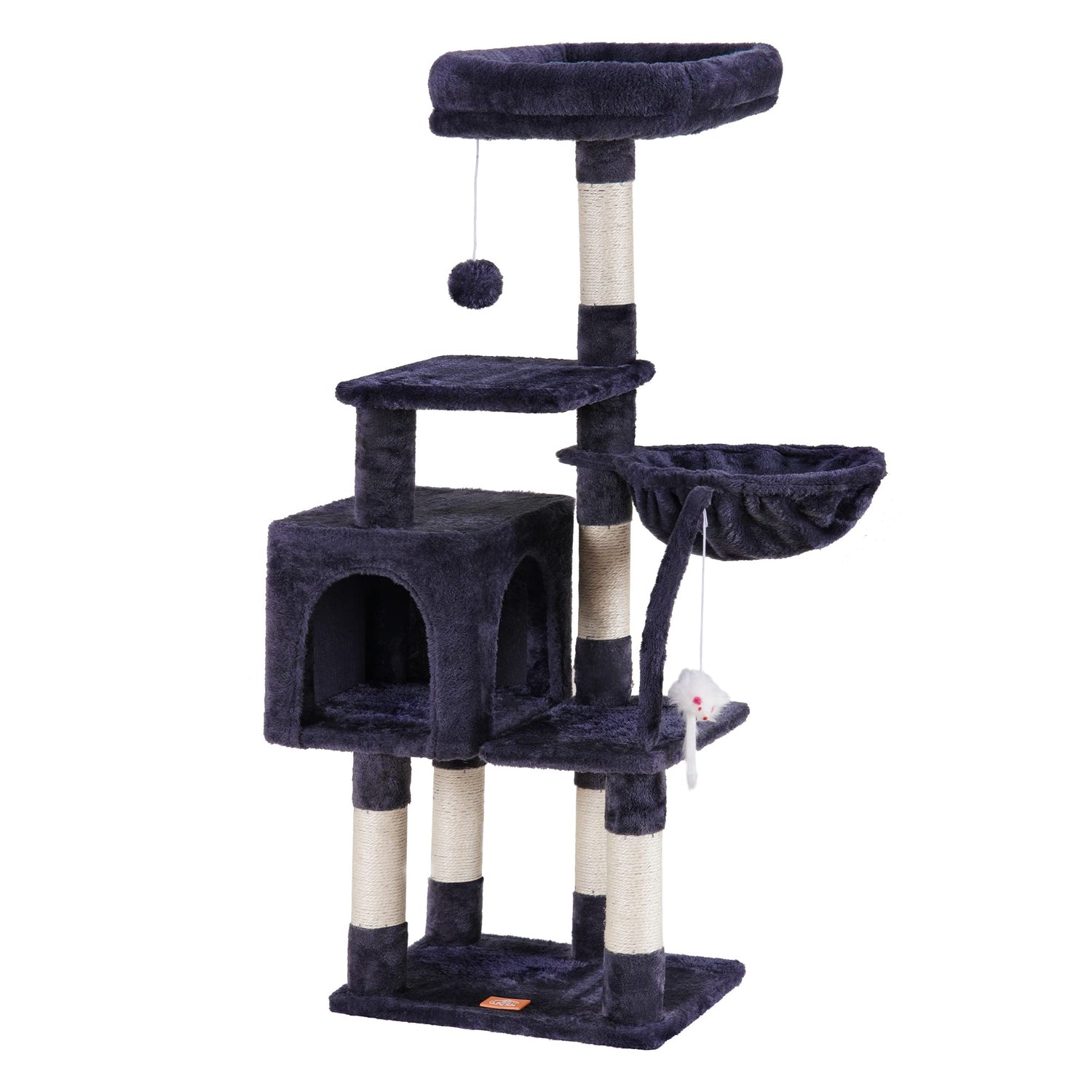 Heybly Cat Tree with Toy, Cat Tower condo for Indoor Cats, Cat House with Padded Plush Perch, Cozy Hammock and Sisal Scratching Posts, Smoky Gray HCT004SG