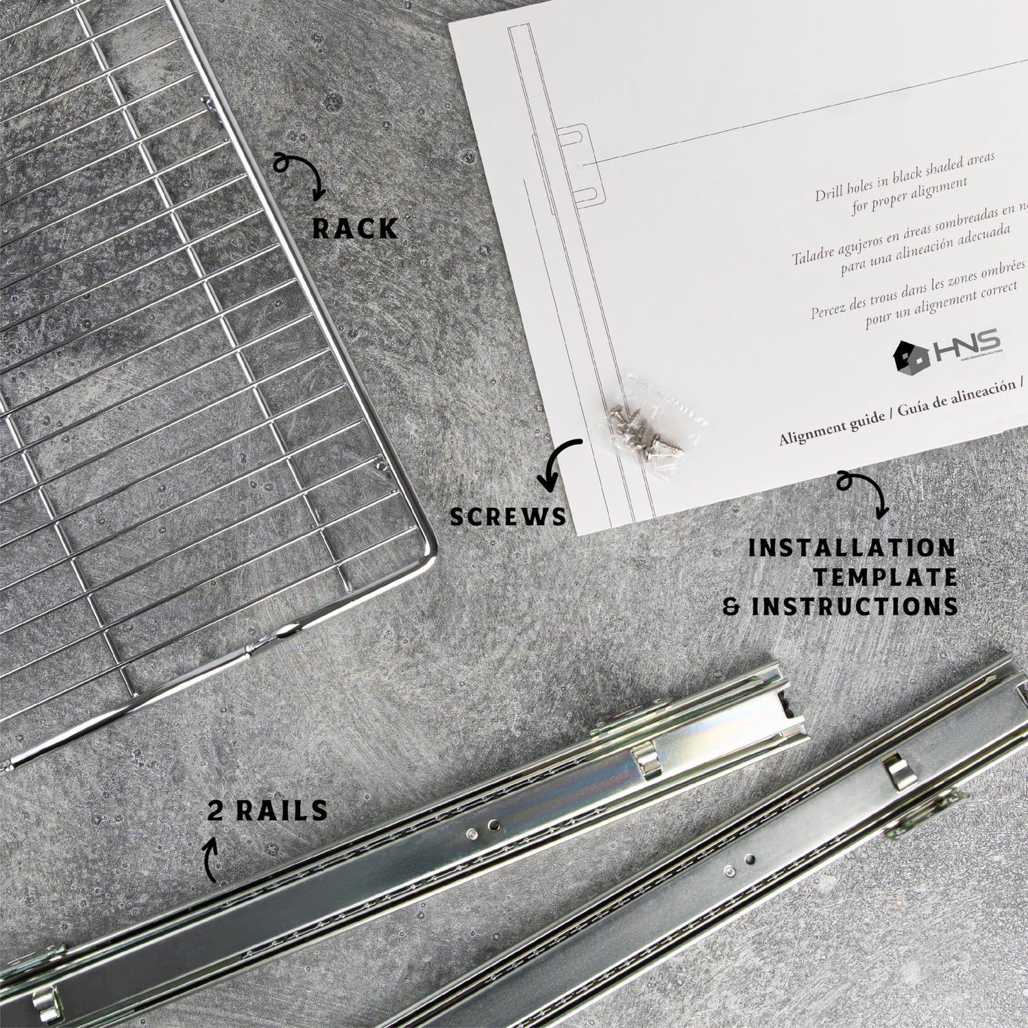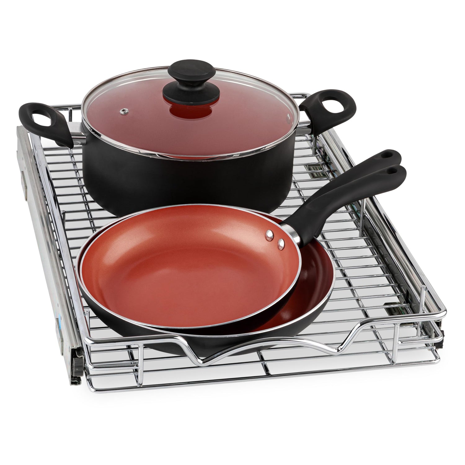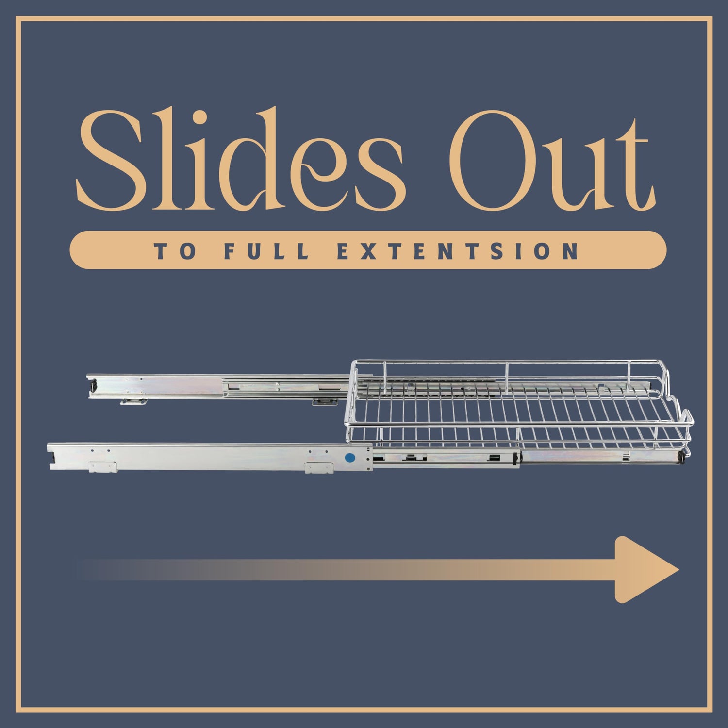 • HIGH QUALITY: Made of durable metal with chrome finish the pull out shelf for kitchen cabinet is simple and easy to install. Designed to fit any style of cabinetry and easy to clean.