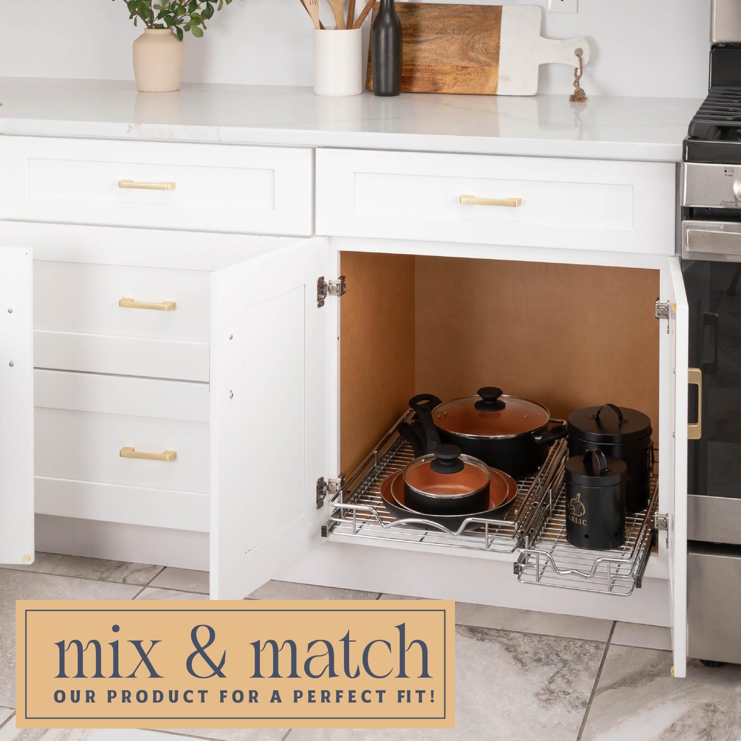 HOLD N' STORAGE Pull Out Cabinet Organizer, Heavy Duty-w/Lifetime Limited Warranty -11”W x 17”D-Requires At Least 12-1/4” Cabinet Opening, Steel Metal Cabinet Drawers Slide Out, Chrome Finish