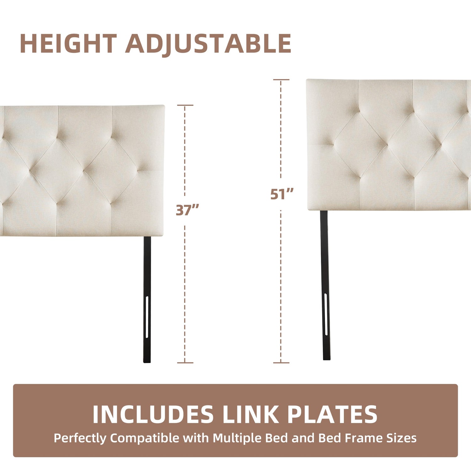 Howjoe Linen Upholstered Headboard Twin Size, Diamond Tufting Solid Wood Twin XL Headboard Only, Adjustable Height from 37” to 51” Head Board, Dorm Bed Frame or Wall Mount Headboards, Beige