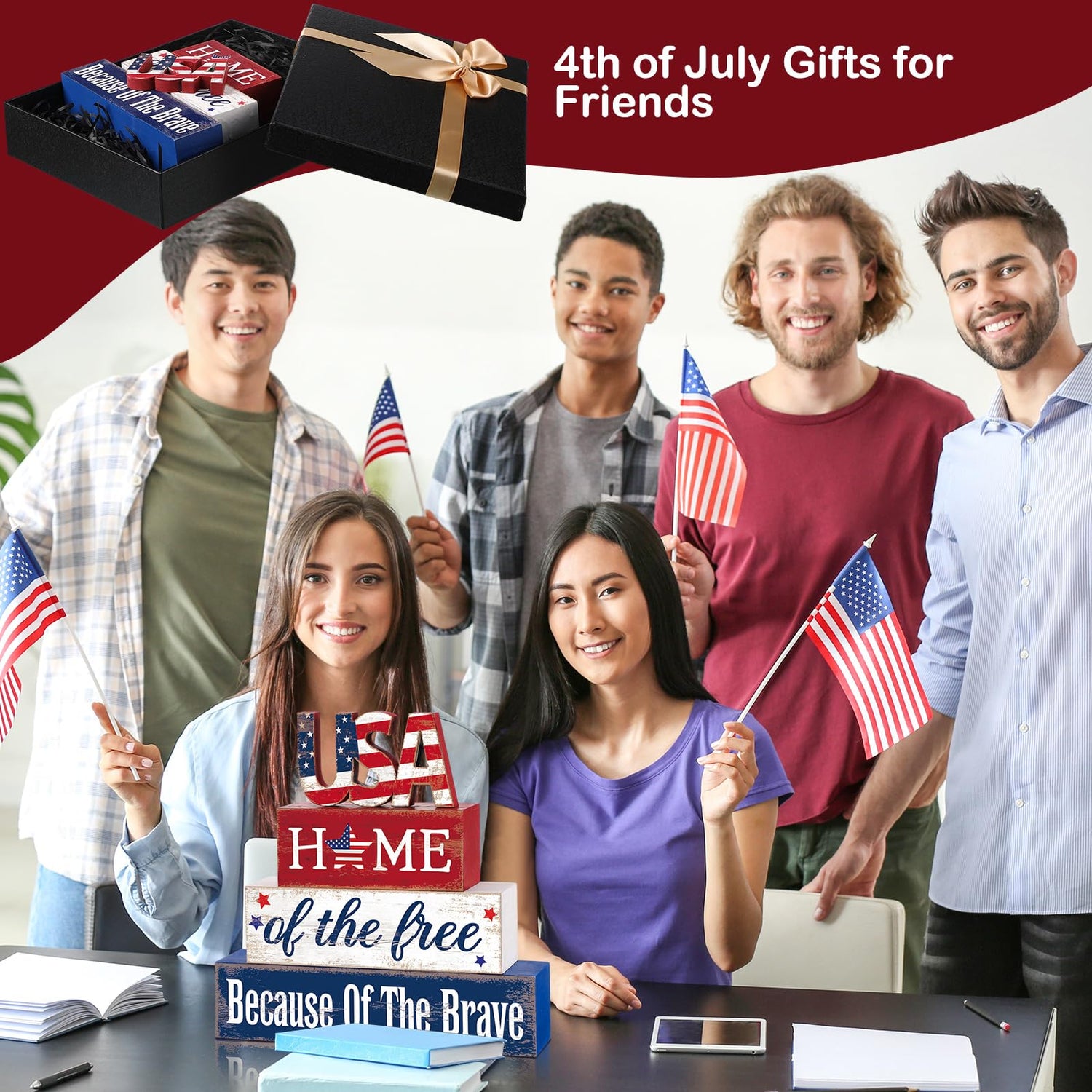 Huquary 4 Pcs Farmhouse 4th of July Patriotic Table Sign Independence Day Table Wood Decorations Patriotic Themed Rustic Farmhouse Wood Block Sign for Party Home Desk (Stylish)
