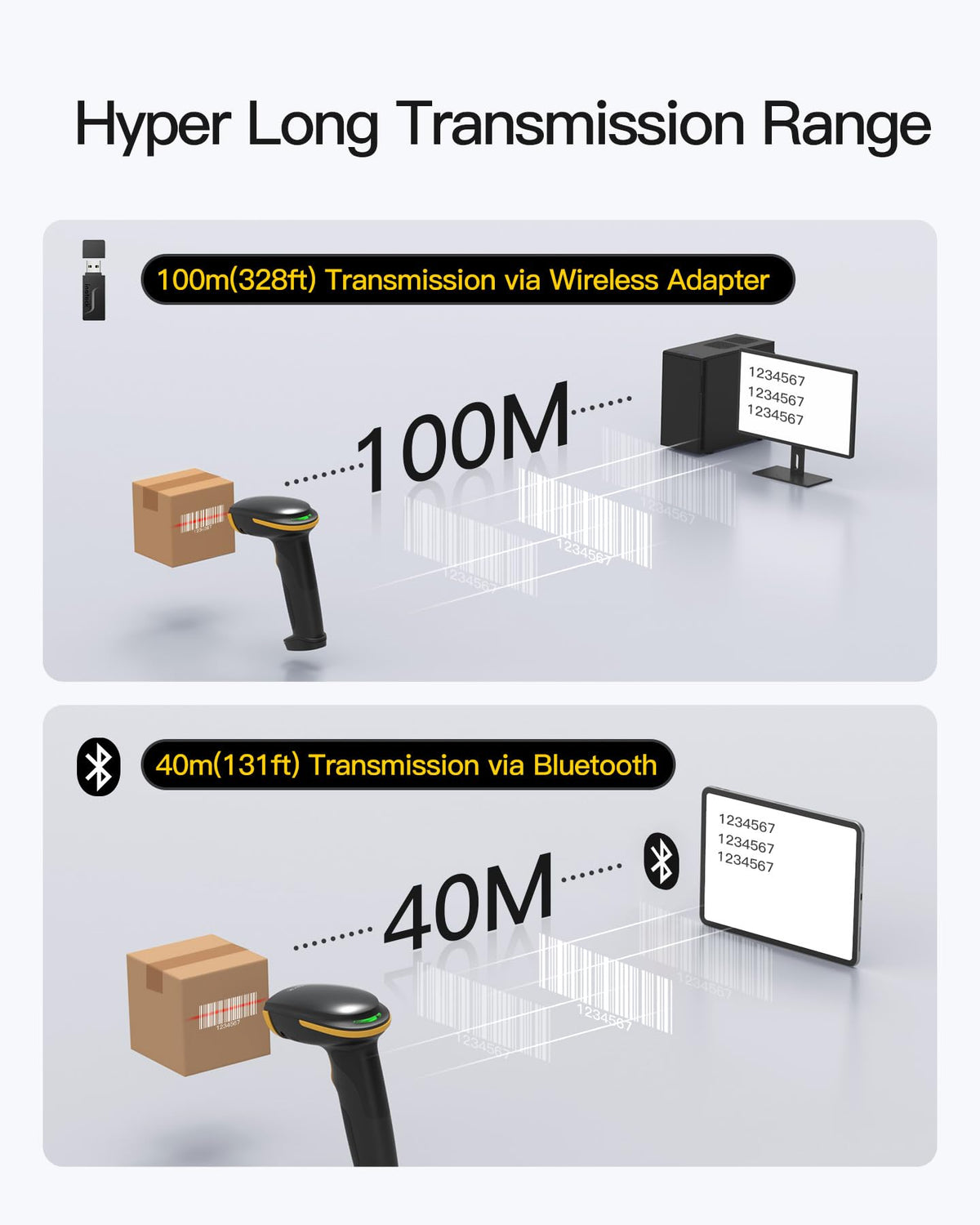 - Superb Compatibility: This bluetooth barcode scanner is equipped with three connection modes, 2.4G wireless, Bluetooth, and wired, and it is compatible with Windows, Mac OS, iOS, Android, iPad OS, and Linux, catering to your barcode scanning needs in diverse scenarios
