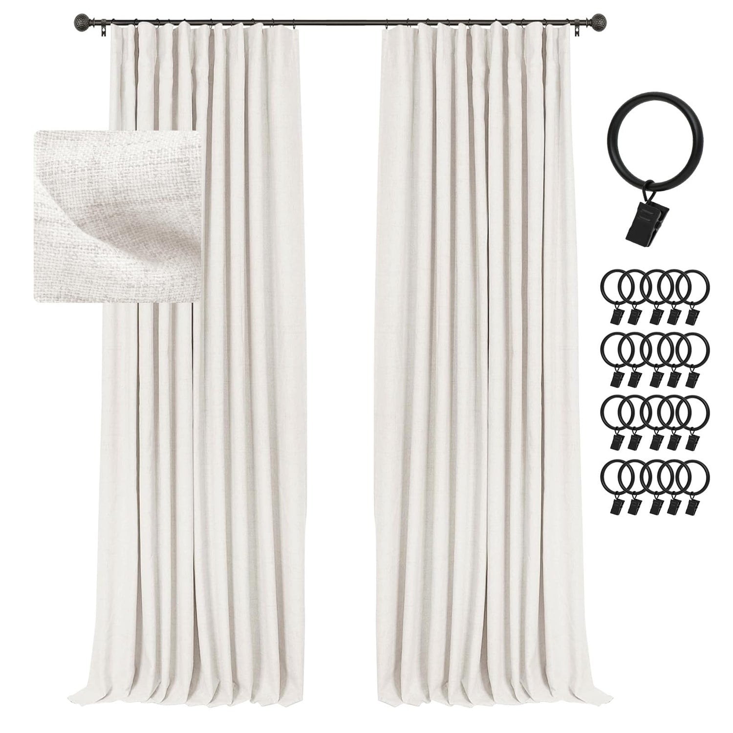 INOVADAY 100% Blackout Curtains for Bedroom, Black Out Curtains Clip Rings/Rod Pocket Linen Blackout Drapes 2 Panels Set, Thermal Insulated Drapes for Living Room, Beige, W50 x L108