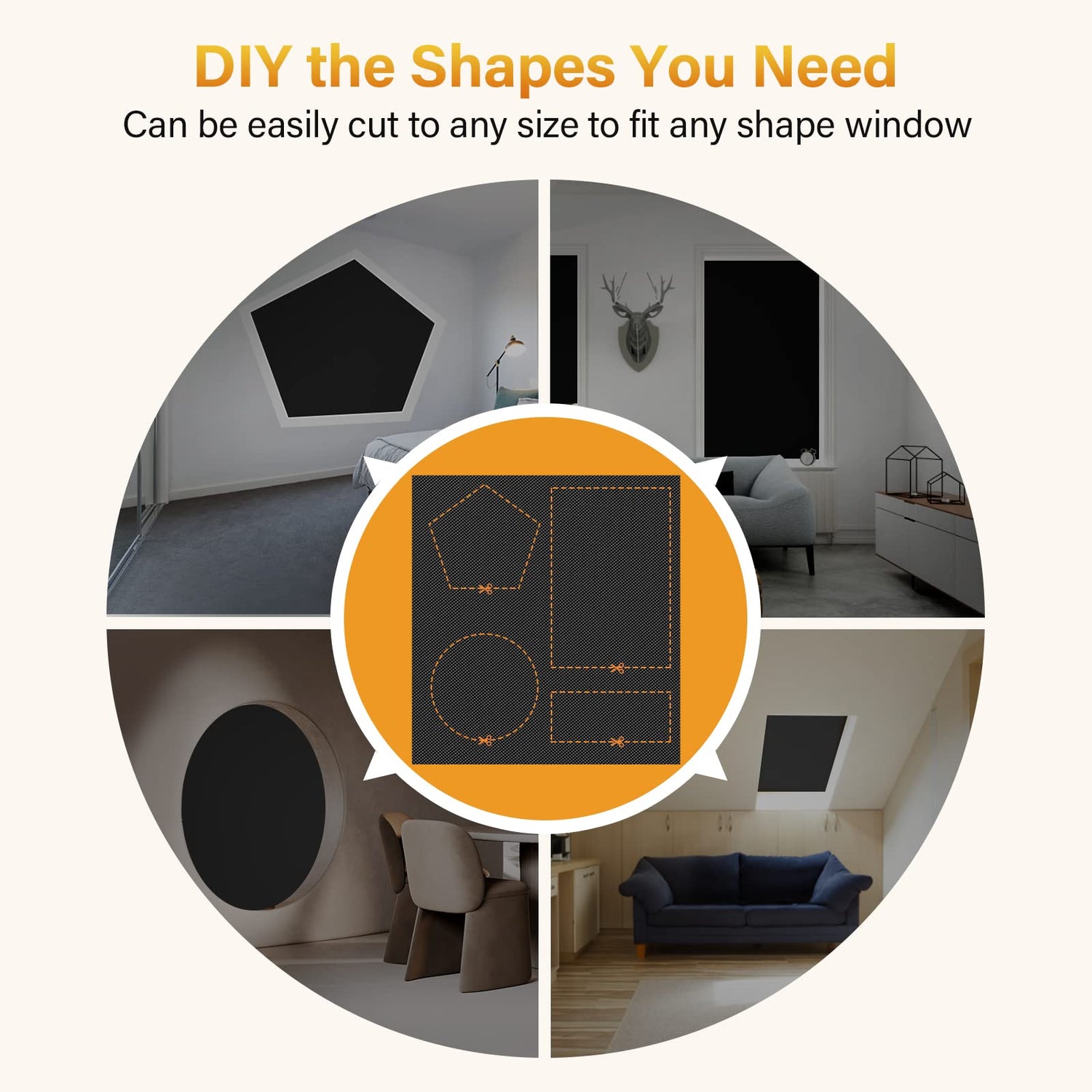• Free to Cut: Our portable blackout shade measures 118"x57". Its large size can be freely cut to perfectly fit any size and shape of windows. Note: Leave a 2-3cm edge to prevent light from entering through the edge when cutting.