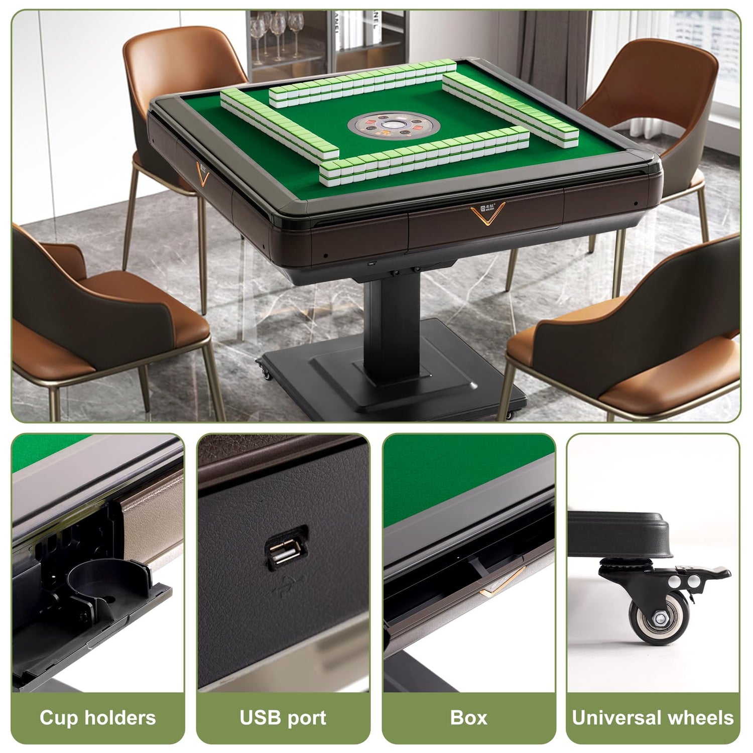 - 【Multi-functional Features】 Equipped with cup holders, ashtrays, storage compartments, phone holder, and USB charging port, offering ample storage space for an enhanced mahjong experience.