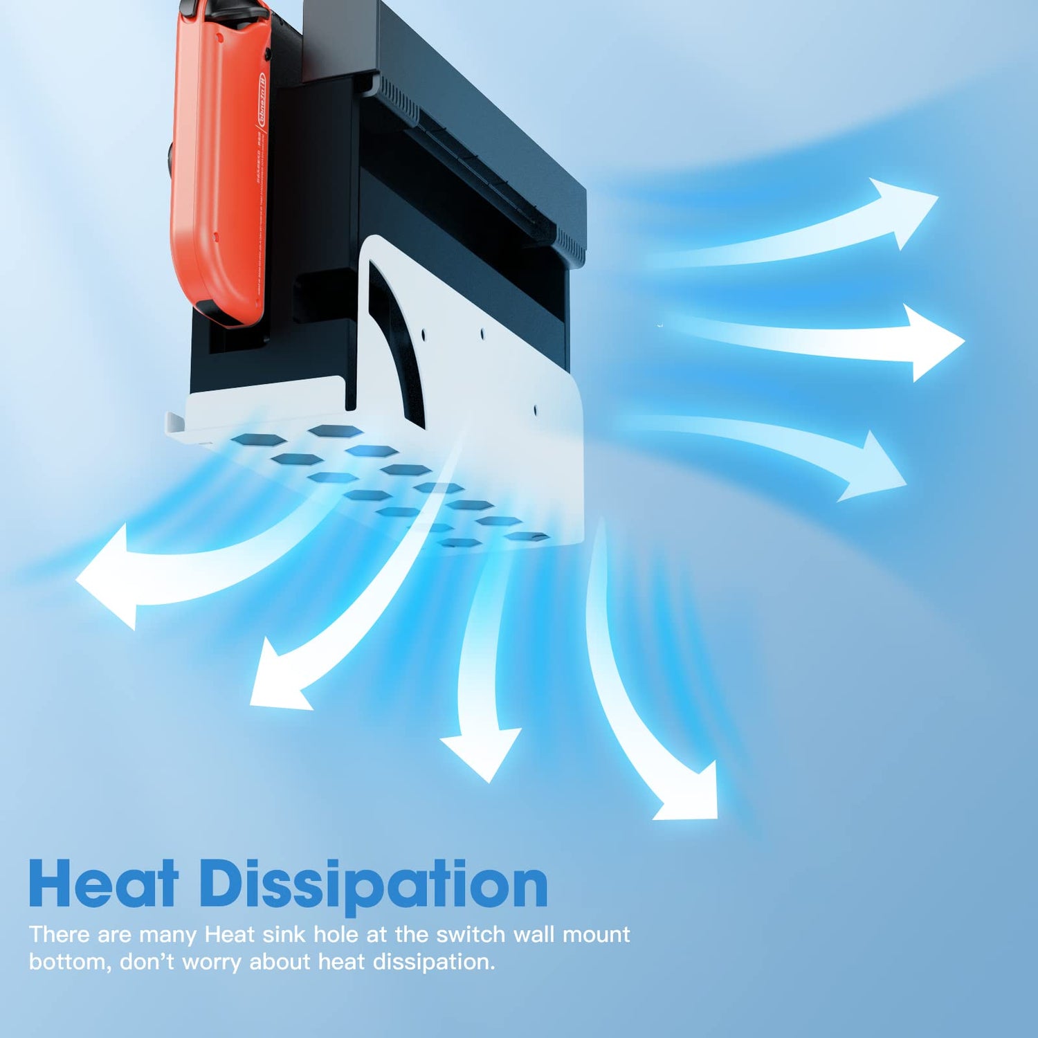 - HEAT DISSIPATION: You don't have to worry about heat dissipation after wall mounting. This Nintendo switch wall mount has many cooling holes on the bottom, which will not cause the Switch to overheat