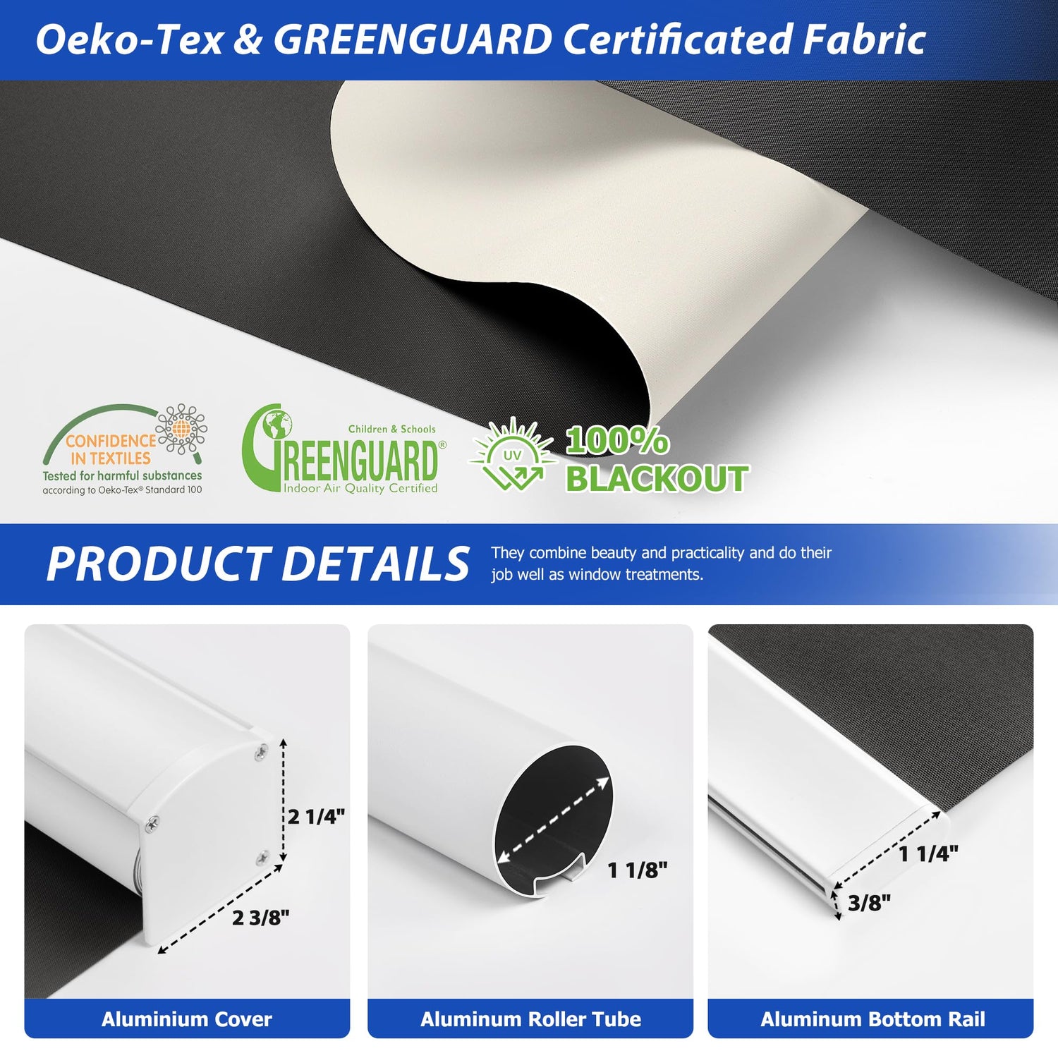 - 100% Blackout Roller Shade: Blocking out 100% light for complete privacy, energy saving insulates against heat and cold, light control and UV protection for bedrooms, children’s rooms and movie rooms. Excellent for deeper and longer sleepers.