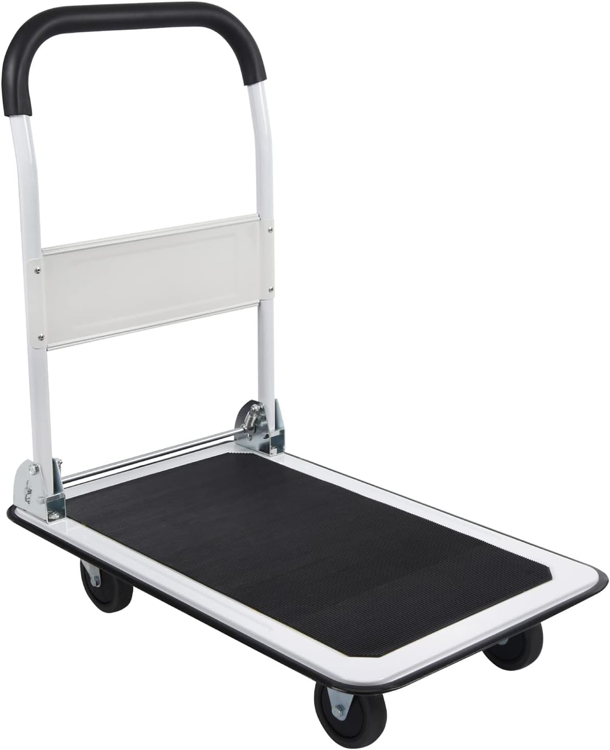 LEADALLWAY Foldable Push Cart Platform Cart 330lbs Capacity 4 Wheels 28.7x18.5x32.3inches White Small Flatbed Cart