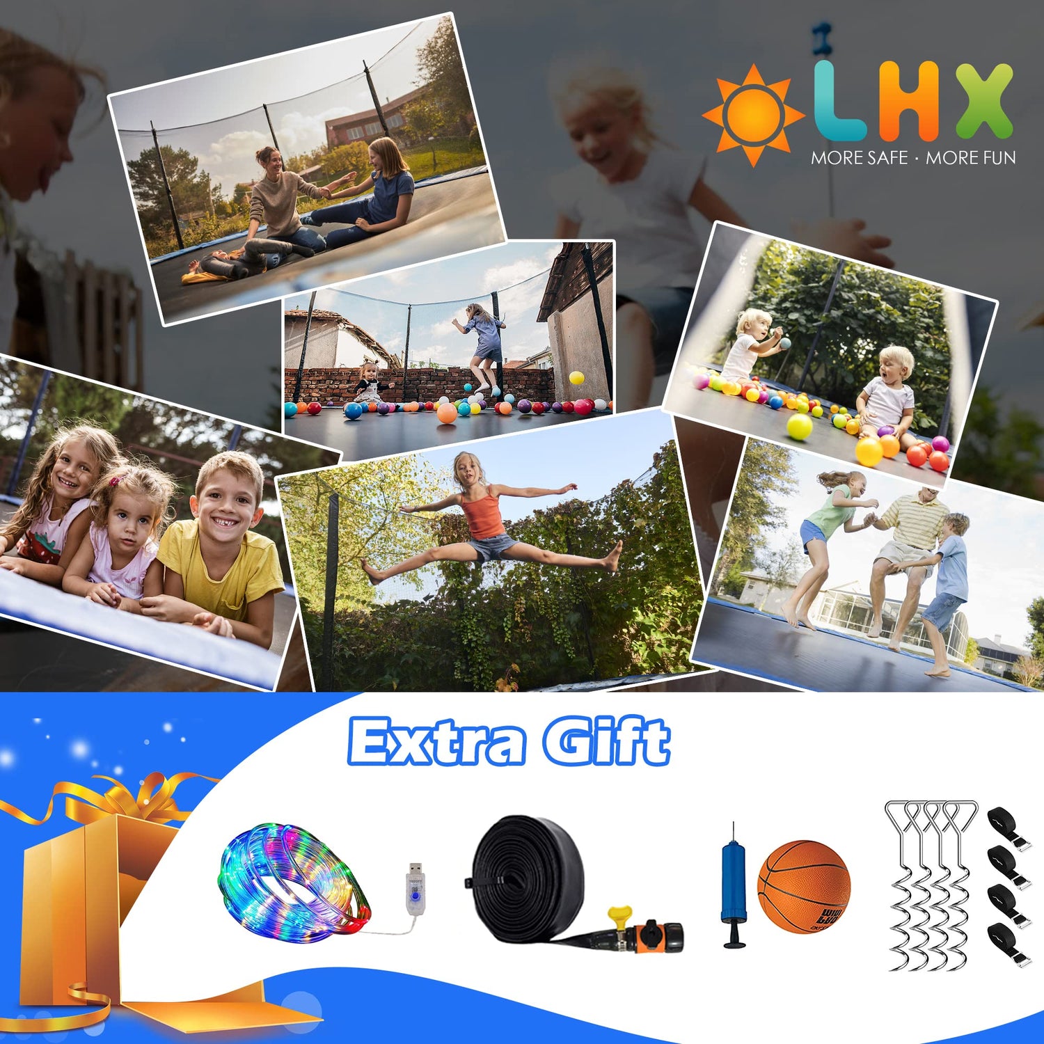 - 🔧【Easy To Install】LHX provide graphic installation manual and video installation guide, only 2 people can Fast setup and easy to put together in 1.5 hours, without paying for additional assembly service. All LHX trampolines have approved by ASTM F381, F2225, D638 & AATCC 169 Standard Safety Specification.