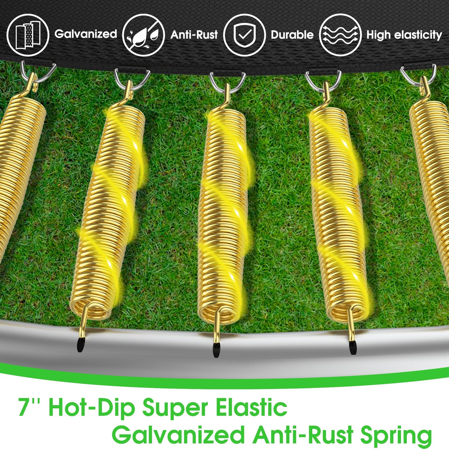 - 🥇【Galvanized Springs & Enclosure Net】LHX 14 ft trampoline is equipped with 80 oversized 6.5" galvanized springs, which have strong tensile and rebound capabilities, good cushioning, allowing the trampoline to withstand large loads. The 14 ft trampoline enclosure net is made of high-density sun-proof woven mesh with high-density anti-UV PP jump mat no gap attached, which not only protects the jumper's safety but also avoids sunlight during jumping.