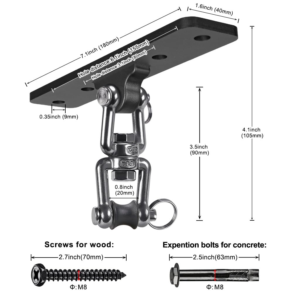 • VERSATILE USE: Suitable for ceiling swings for boxing, Muay Thai, and MMA training. All installation screws are provided, making installation simple