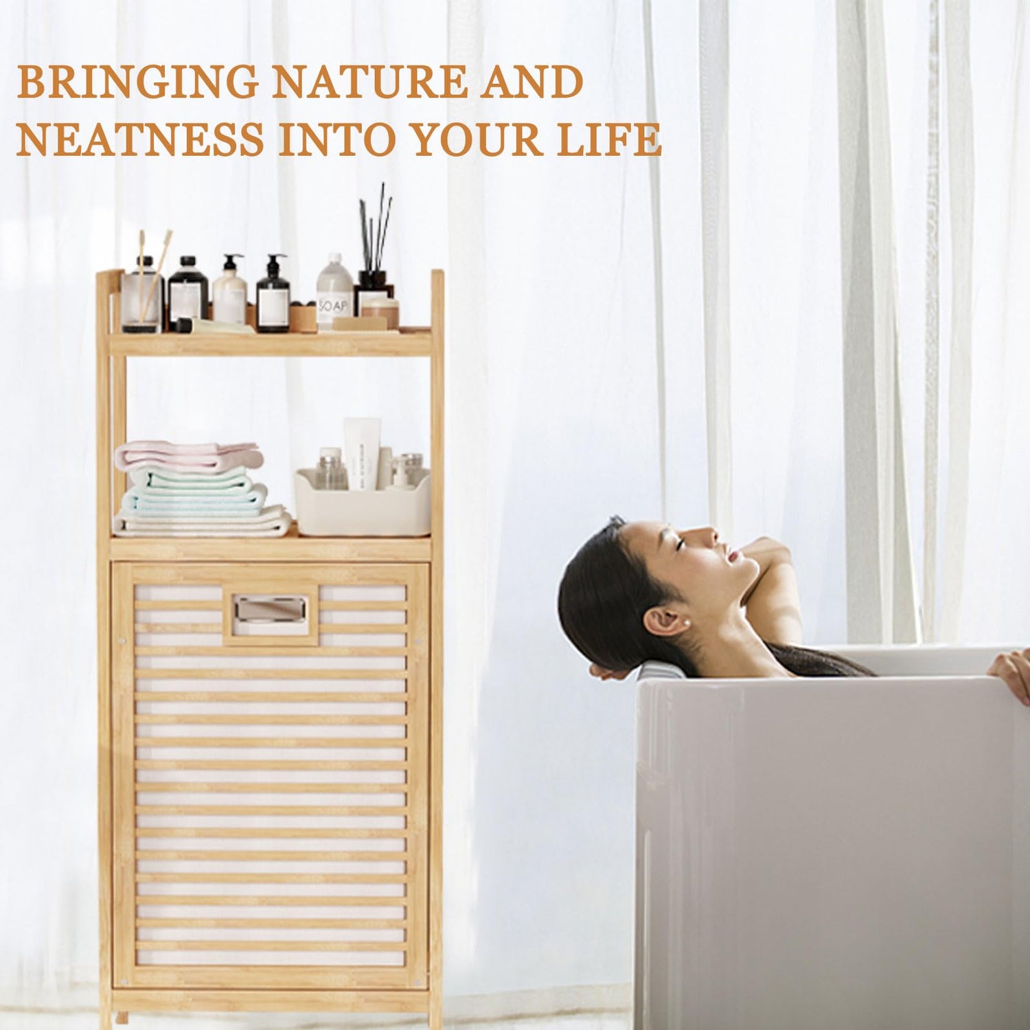 Lkeiyay Laundry Hamper Tilt-Out Laundry Linen Hamper Bamboo, 2 storage shelves and Removable Lining for Bedroom,Laundry Room,bathroom storage cabinet