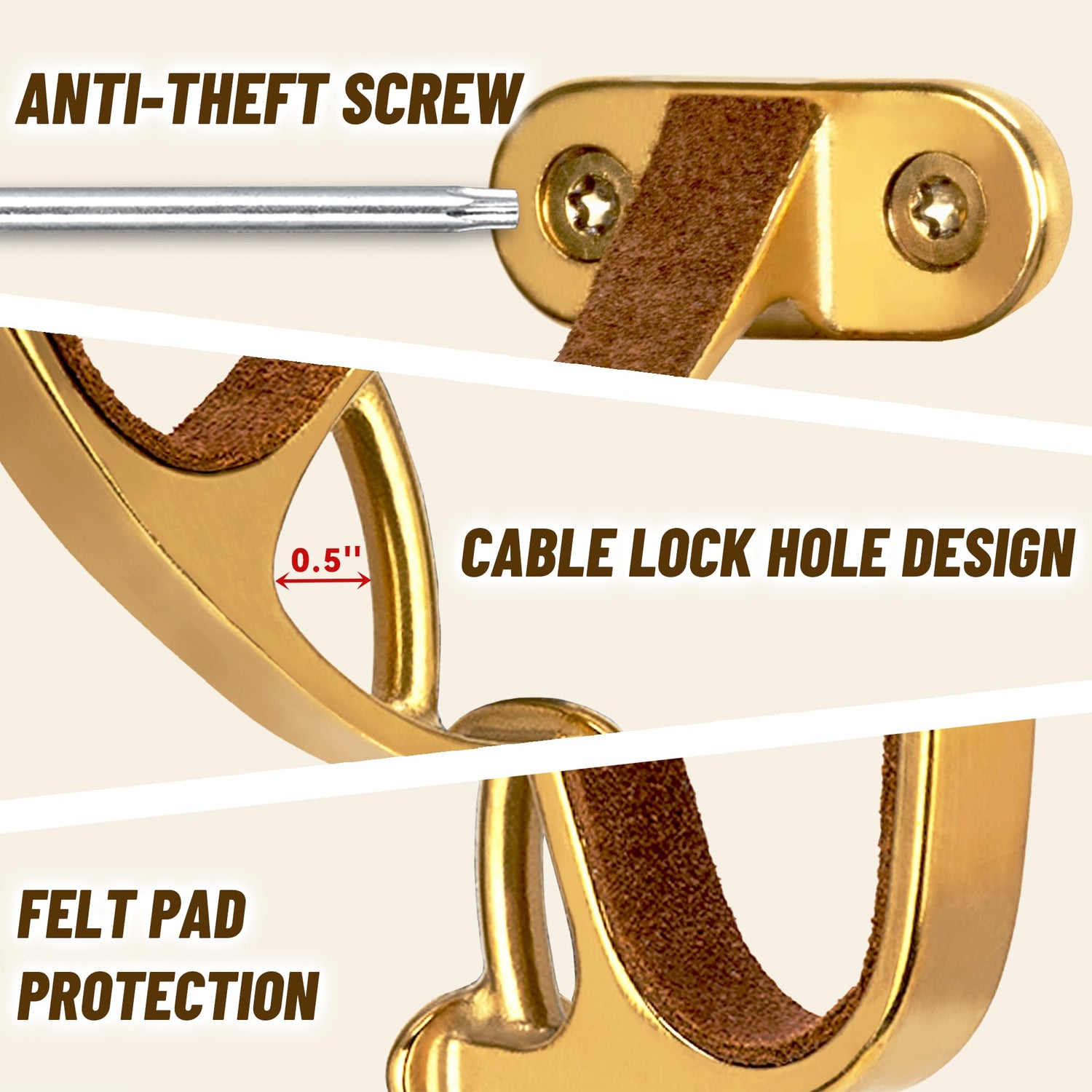 LOIUO Gun Rack Storage Wall Mount Rifles Shotgun Hooks Horizontal Metal Hangers for Storing Shotguns Rifles Archery Bow Heavy Duty Steel (Gold)